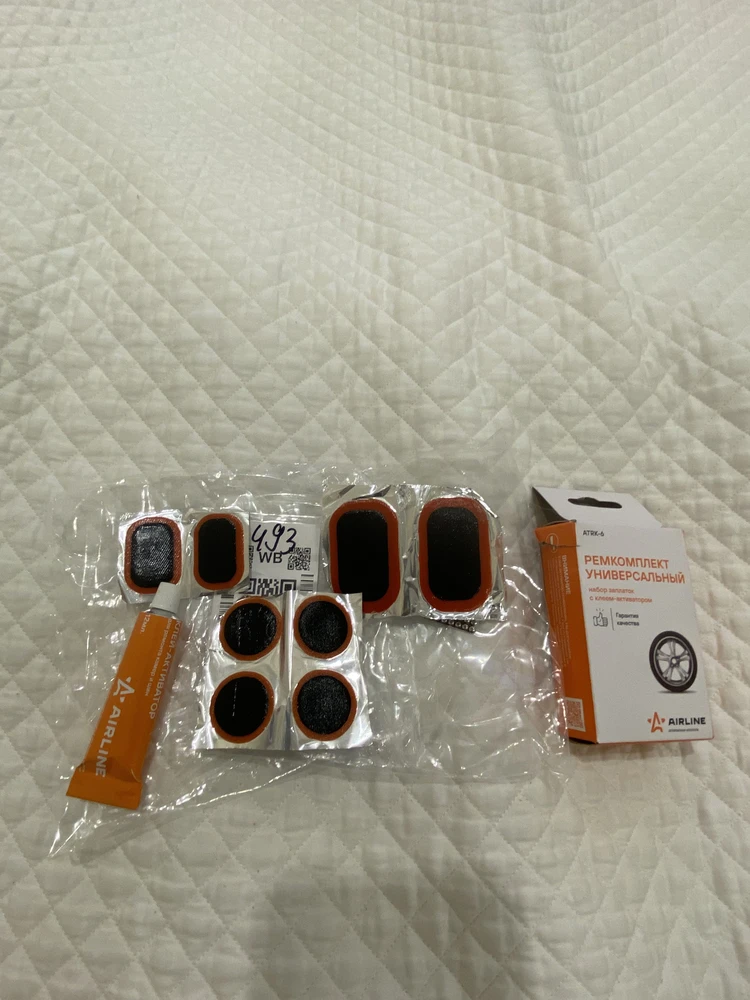 Ремонтный комплект из серии AIRLINE предназначен специально для велосипедных шин и автомобильных камер. В комплекте представлены заплатки круглой и прямоугольной формы, наждачная бумага, необходимая для зачистки, а также тюбик клея.