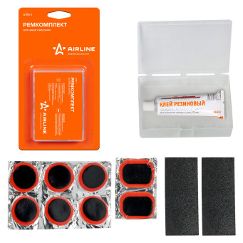 Ремонтный комплект из серии AIRLINE предназначен специально для велосипедных шин и автомобильных камер. В комплекте представлены заплатки круглой и прямоугольной формы, наждачная бумага, необходимая для зачистки, а также тюбик клея. Принадлежности хранятся в пластиковом кейсе, в котором удобно хранить и транспортировать весь комплект.
