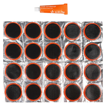 Ремкомплект для камер, заплатки круглые D42 мм - 24 шт., клей-активатор 12мл