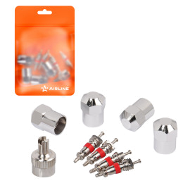 Ремкомплект для вентилей (4 золотника, 4 металл.колп, 1 ключ) в пакете