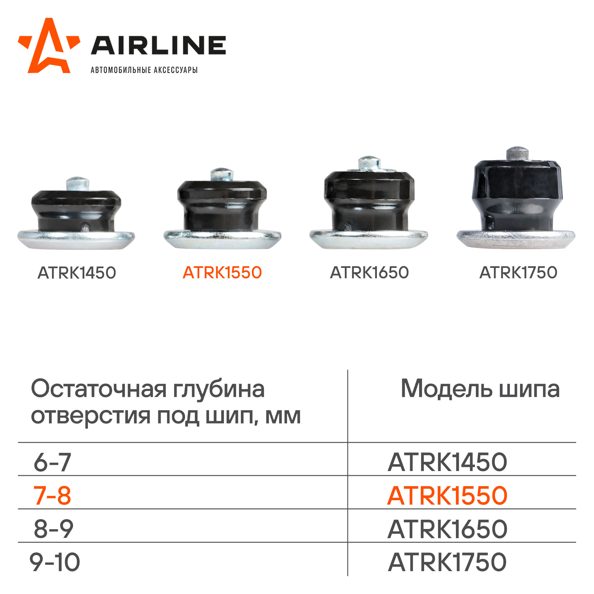 Ремонтные шипы предназначены для воcстановления шипованных зимних шин, ставятся в отверстия, где в процессе эксплуатации были утрачены шипы. В зависимости от глубины этого отверстия подбирается высота ремонтного шипа. Шипы используются для глубины отверстия 7-8 мм. Специальная форма шипа, увеличенный диаметр фланца (12 мм), материал втулки - обеспечивают его надежное удержание в протекторе зимней шины.