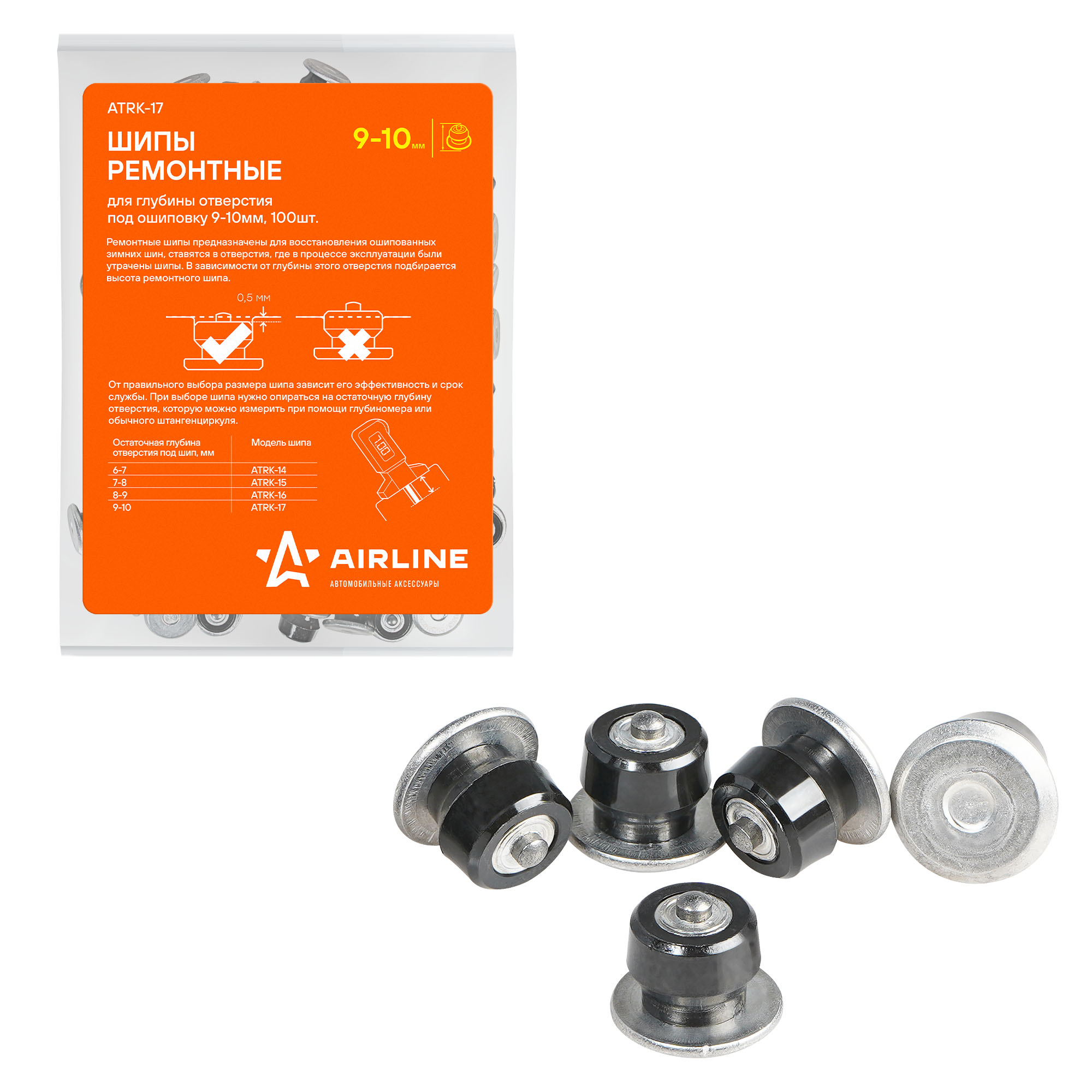 Ремонтные шипы предназначены для воcстановления шипованных зимних шин, ставятся в отверстия, где в процессе эксплуатации были утрачены шипы. В зависимости от глубины этого отверстия подбирается высота ремонтного шипа. Шипы используются для глубины отверстия 9-10 мм. Специальная форма шипа, увеличенный диаметр фланца (12 мм), материал втулки - обеспечивают его надежное удержание в протекторе зимней шины.