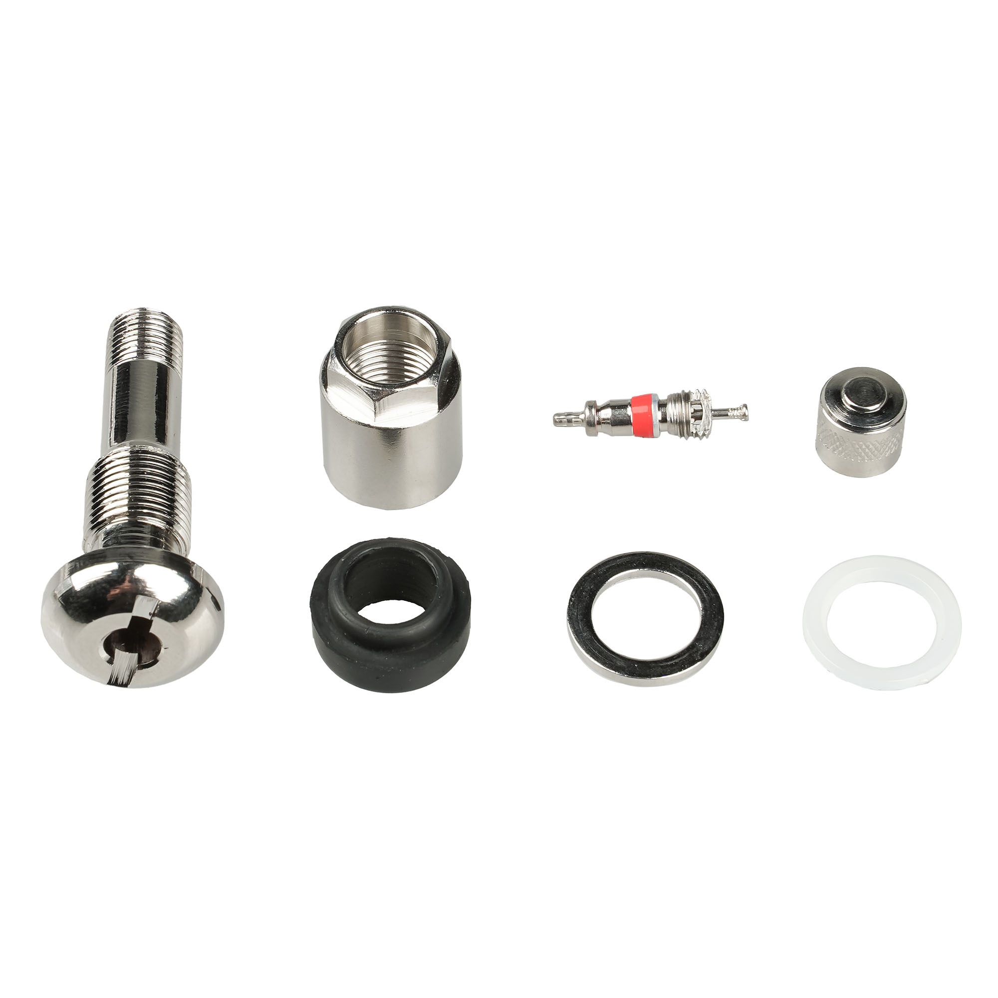 Колесный вентиль представляет собой обратный клапан. Он предназначен для нагнетания и удержания воздуха внутри шины. Корпус, золотник и колпачек выполнены из латуни, прокладка - из резины. Диаметр отверстия в диске - 11.5 мм. Рабочее давление - до 14 bar.