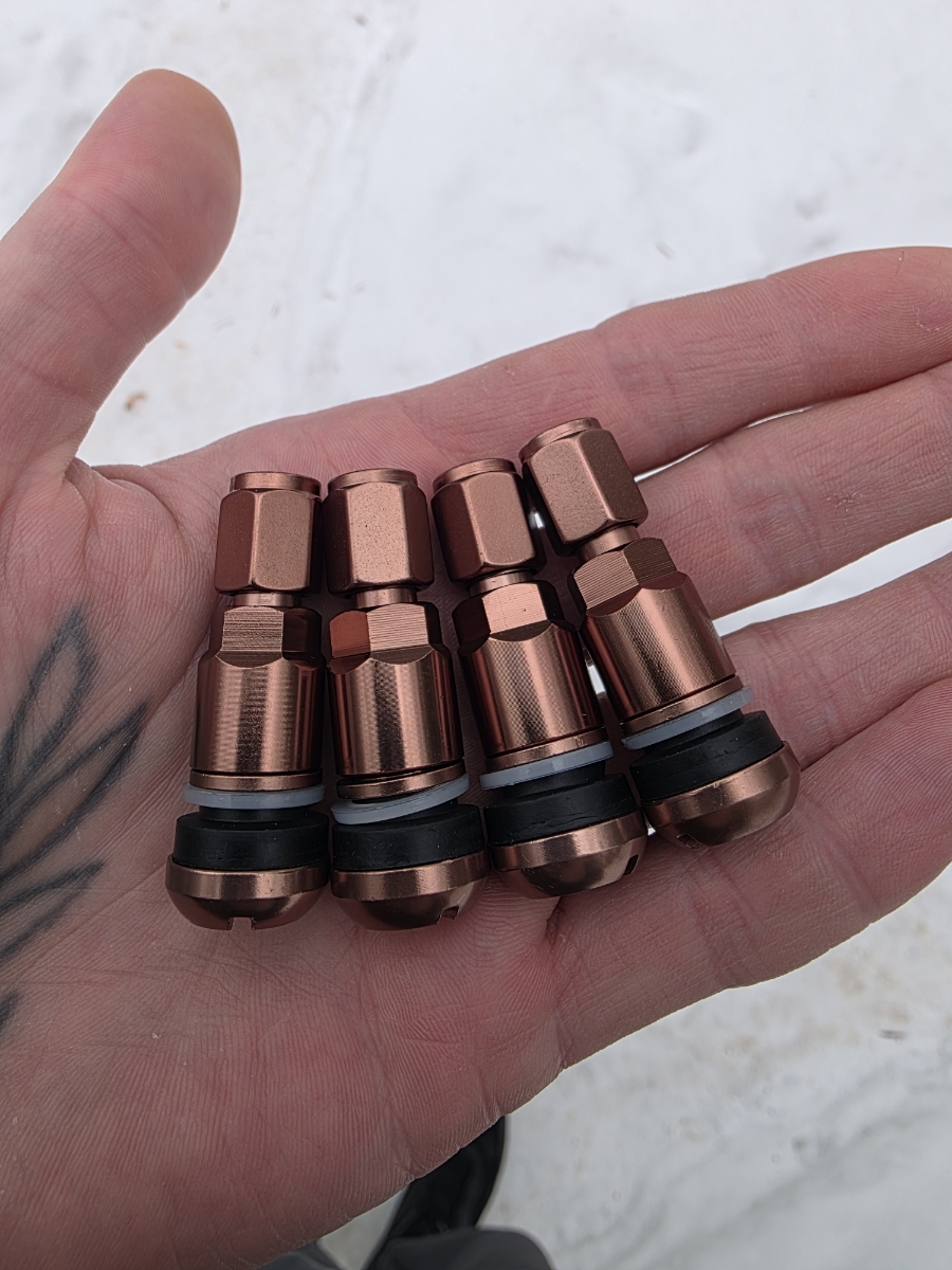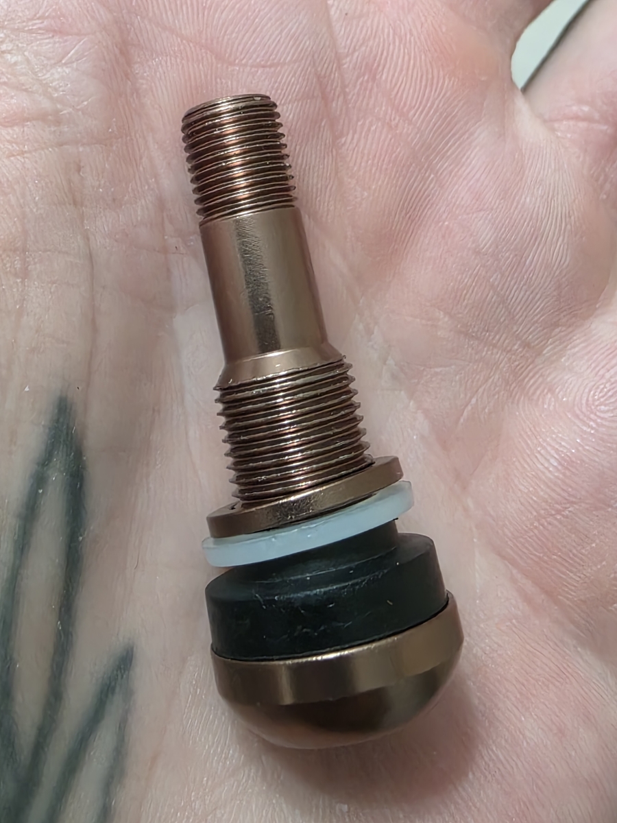 Колесный вентиль представляет собой обратный клапан. Он предназначен для нагнетания и удержания воздуха внутри шины. Корпус и колпачек выполнены из алюминия, золотник из латуни, прокладка - из резины. Диаметр отверстия в диске - 11.5 мм. Рабочее давление - до 14 bar.