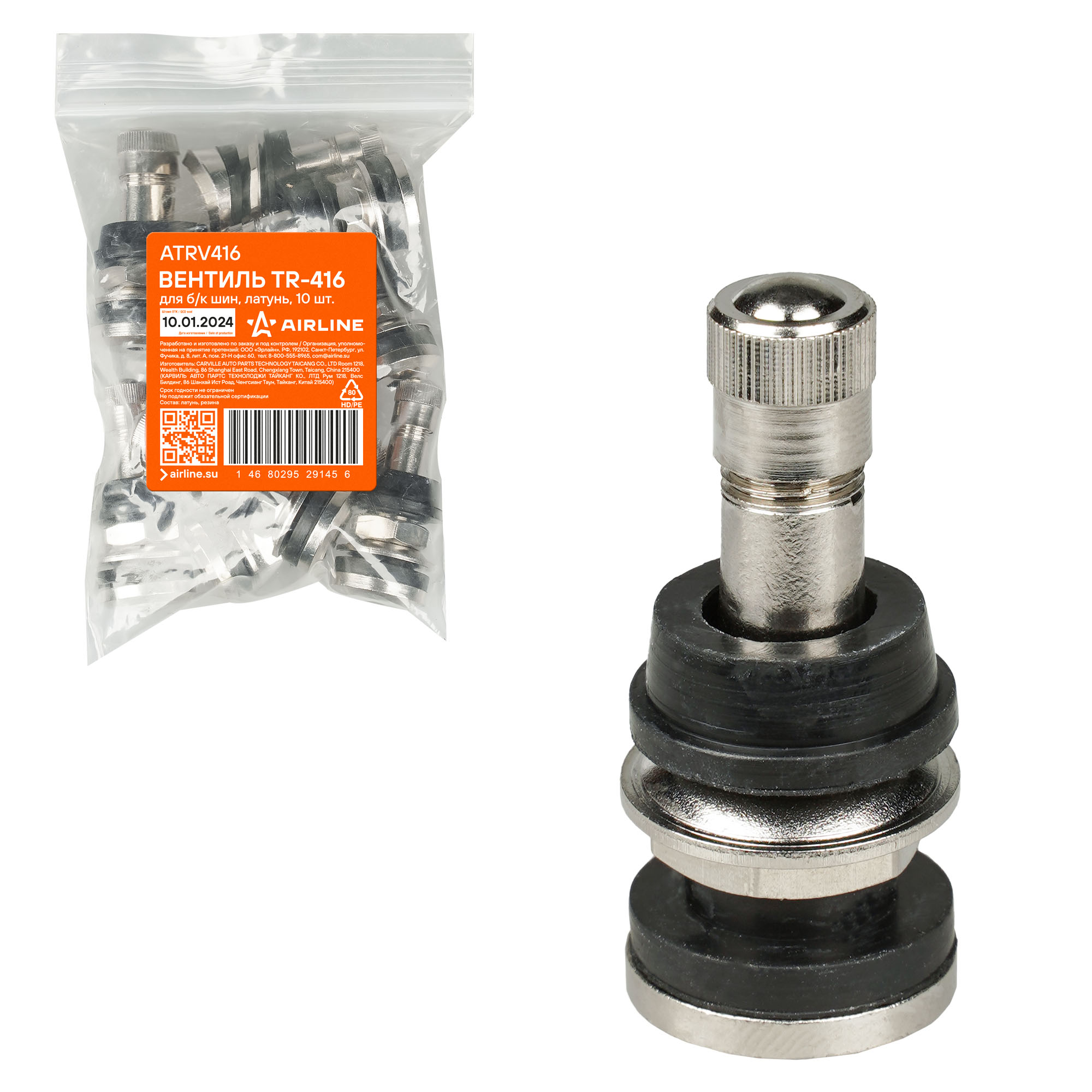 Колесный вентиль представляет собой обратный клапан. Он предназначен для нагнетания и удержания воздуха внутри шины. Корпус, золотник и колпачек выполнены из латуни, прокладка - из резины. Диаметр отверстия в диске - 11.5 / 15.7 мм. Рабочее давление - до 14 bar.