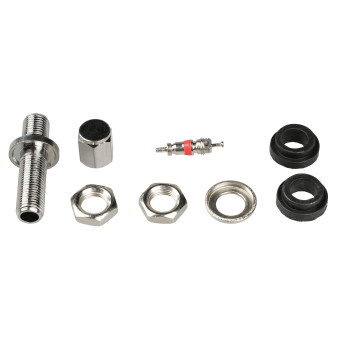 Колесный вентиль представляет собой обратный клапан. Он предназначен для нагнетания и удержания воздуха внутри шины. Корпус, золотник и колпачек выполнены из латуни, прокладка - из резины. Диаметр отверстия в диске - 11.5 мм. Рабочее давление - до 14 bar.