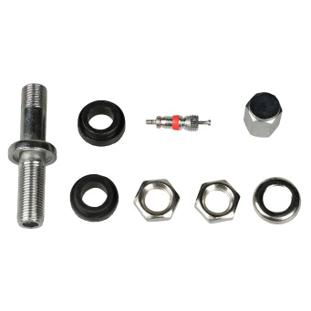 Колесный вентиль представляет собой обратный клапан. Он предназначен для нагнетания и удержания воздуха внутри шины. Корпус, золотник и колпачек выполнены из латуни, прокладка - из резины. Диаметр отверстия в диске - 11.5 мм. Рабочее давление - до 14 bar.