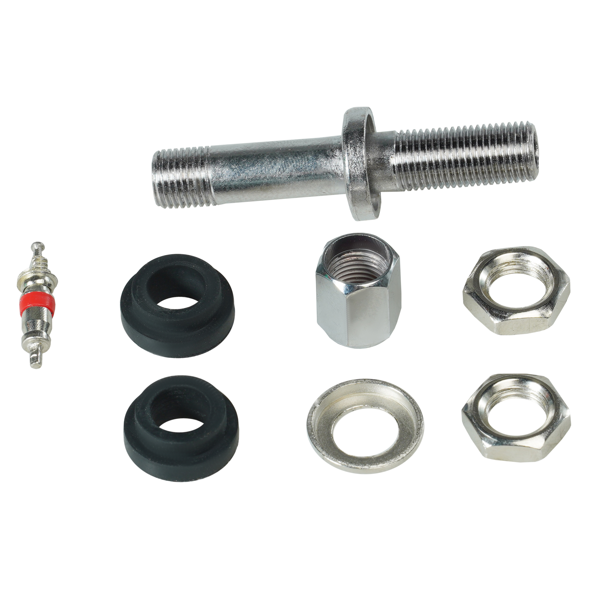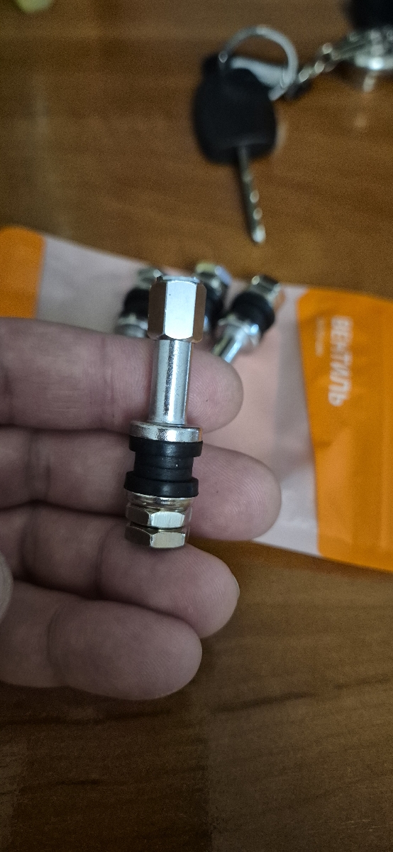 Колесный вентиль представляет собой обратный клапан. Он предназначен для нагнетания и удержания воздуха внутри шины. Корпус, золотник и колпачек выполнены из латуни, прокладка - из резины. Диаметр отверстия в диске - 11.5 мм. Рабочее давление - до 14 bar.