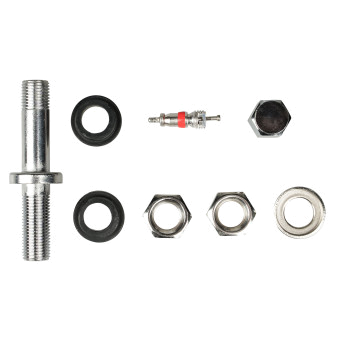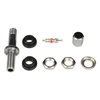 Колесный вентиль представляет собой обратный клапан. Он предназначен для нагнетания и удержания воздуха внутри шины. Корпус, золотник и колпачек выполнены из латуни, прокладка - из резины. Диаметр отверстия в диске - 11.5 мм. Рабочее давление - до 14 bar.