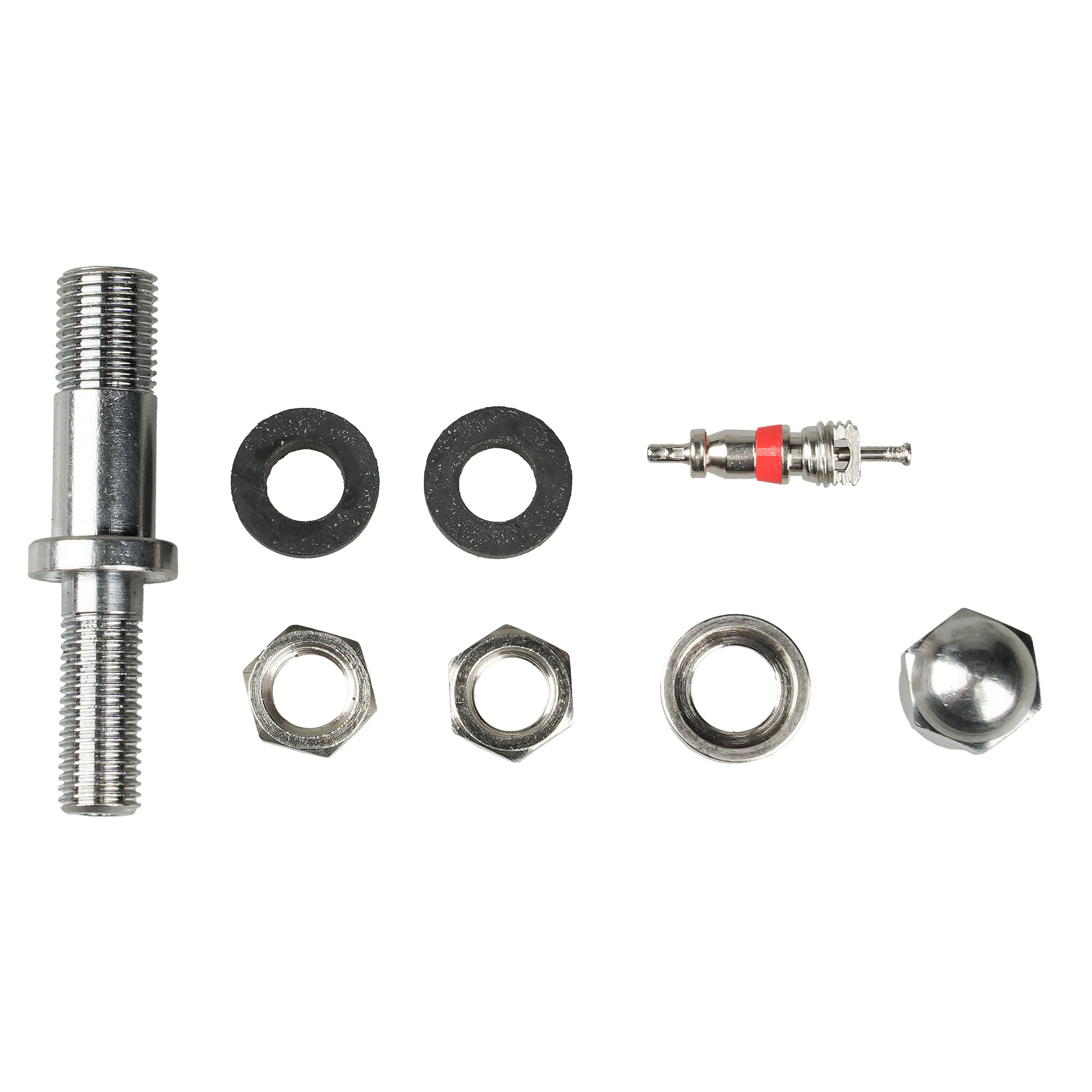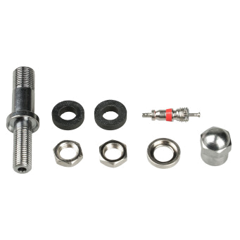 Колесный вентиль представляет собой обратный клапан. Он предназначен для нагнетания и удержания воздуха внутри шины. Корпус, золотник и колпачек выполнены из латуни, прокладка - из резины. Диаметр отверстия в диске - 6 мм. Рабочее давление - до 14 bar.