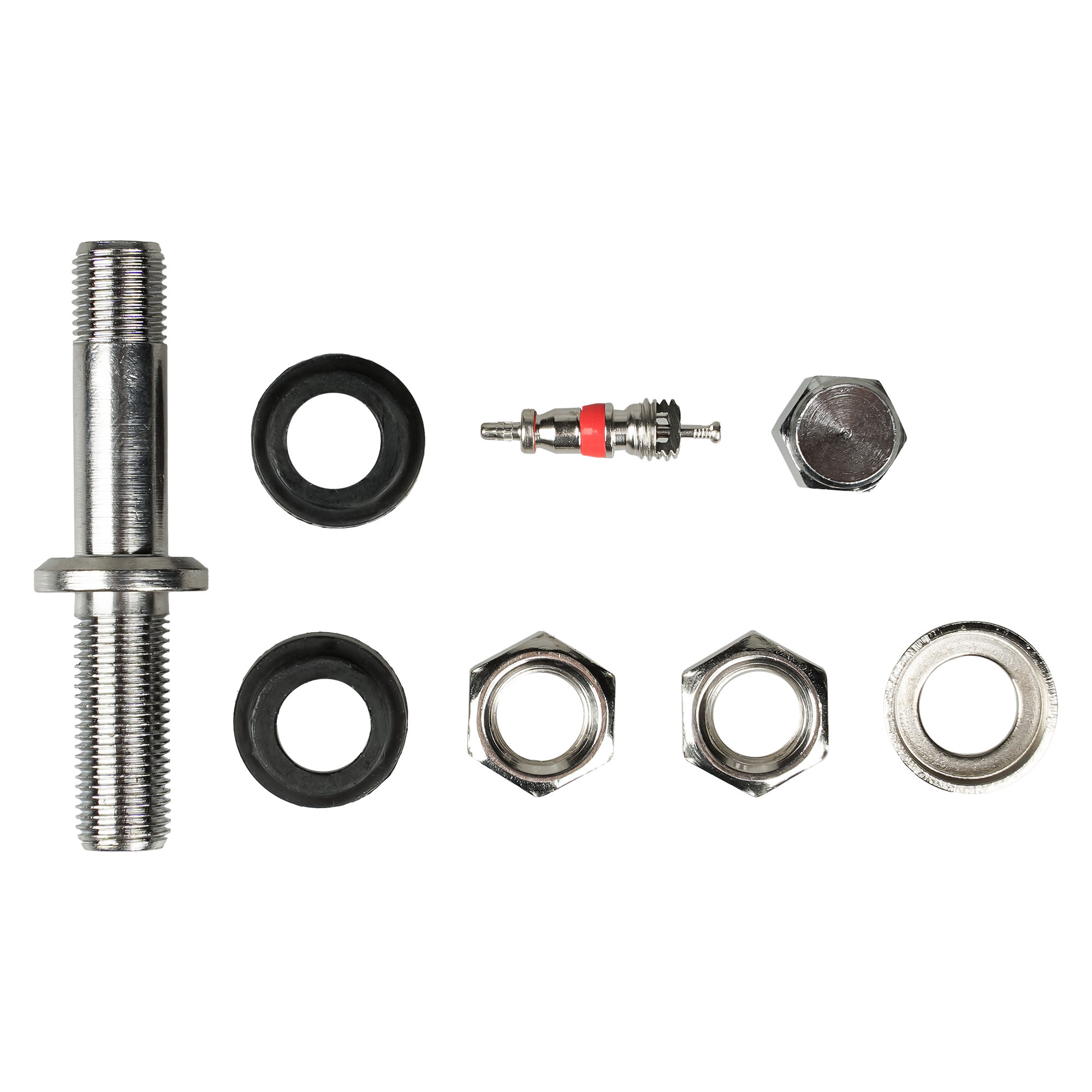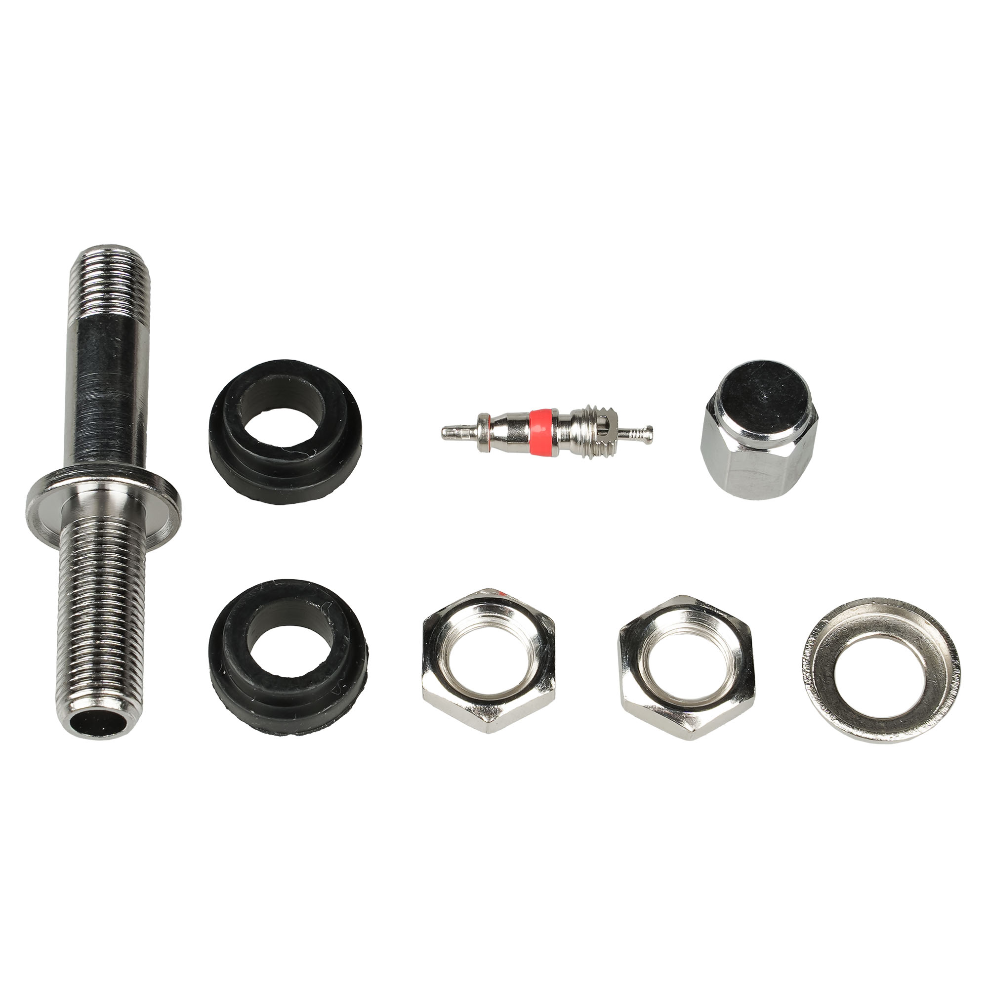 Колесный вентиль представляет собой обратный клапан. Он предназначен для нагнетания и удержания воздуха внутри шины. Корпус, золотник и колпачек выполнены из латуни, прокладка - из резины. Диаметр отверстия в диске - 11.5 мм. Рабочее давление - до 14 bar.