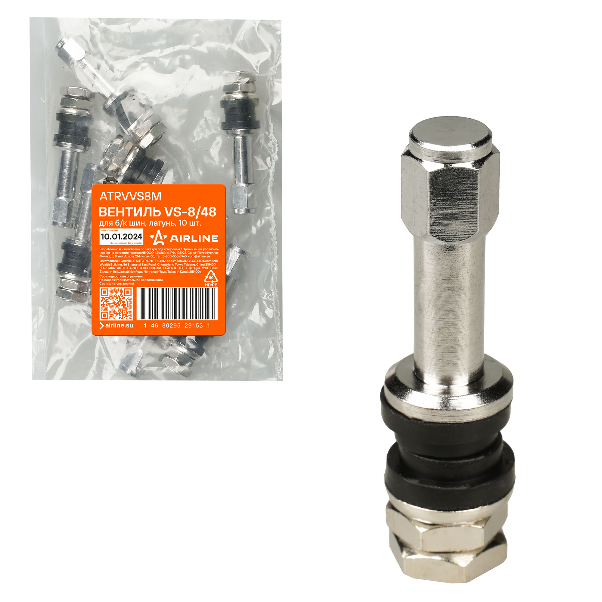 Вентиль для б/к шин VS-8/48, латунь