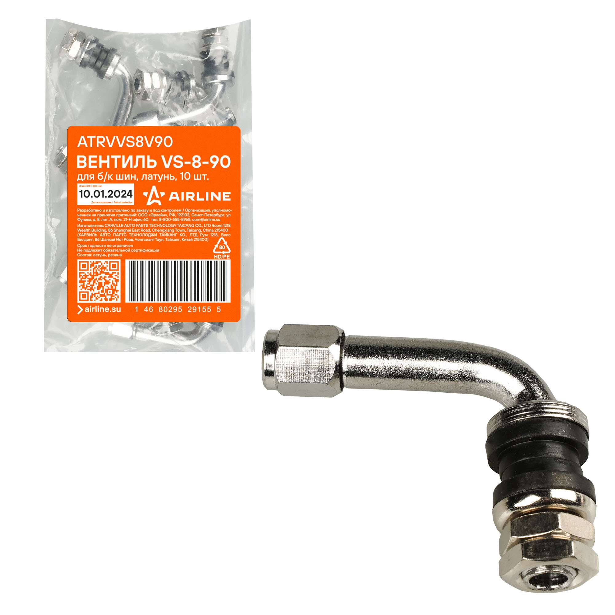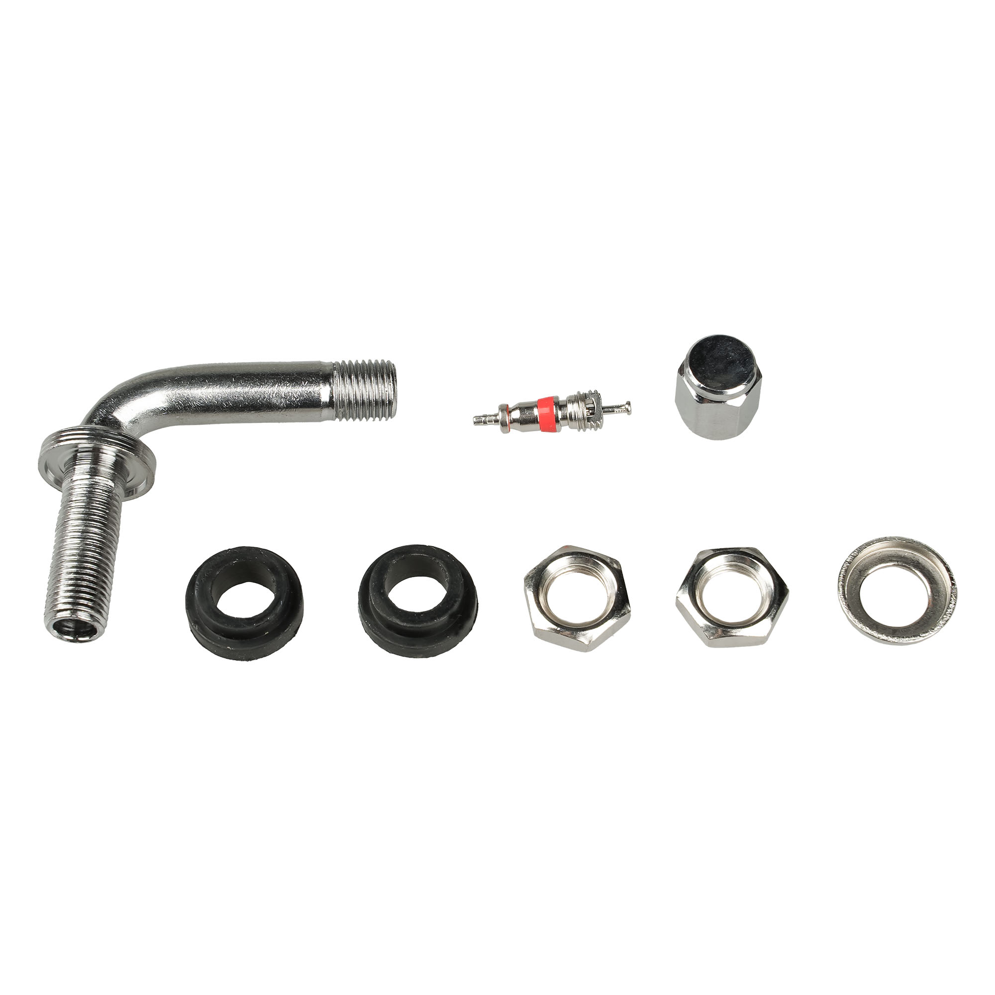 Колесный вентиль представляет собой обратный клапан. Он предназначен для нагнетания и удержания воздуха внутри шины. Корпус, золотник и колпачек выполнены из латуни, прокладка - из резины. Диаметр отверстия в диске - 11.5 мм. Рабочее давление - до 14 bar.