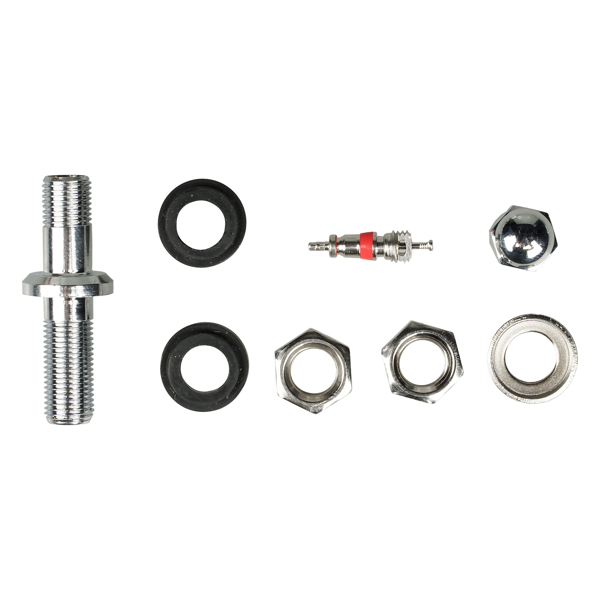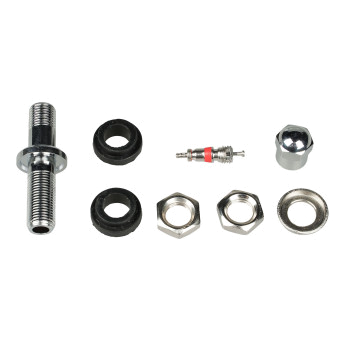 Колесный вентиль представляет собой обратный клапан. Он предназначен для нагнетания и удержания воздуха внутри шины. Корпус, золотник и колпачек выполнены из латуни, прокладка - из резины. Диаметр отверстия в диске - 11.5 мм. Рабочее давление - до 14 bar.