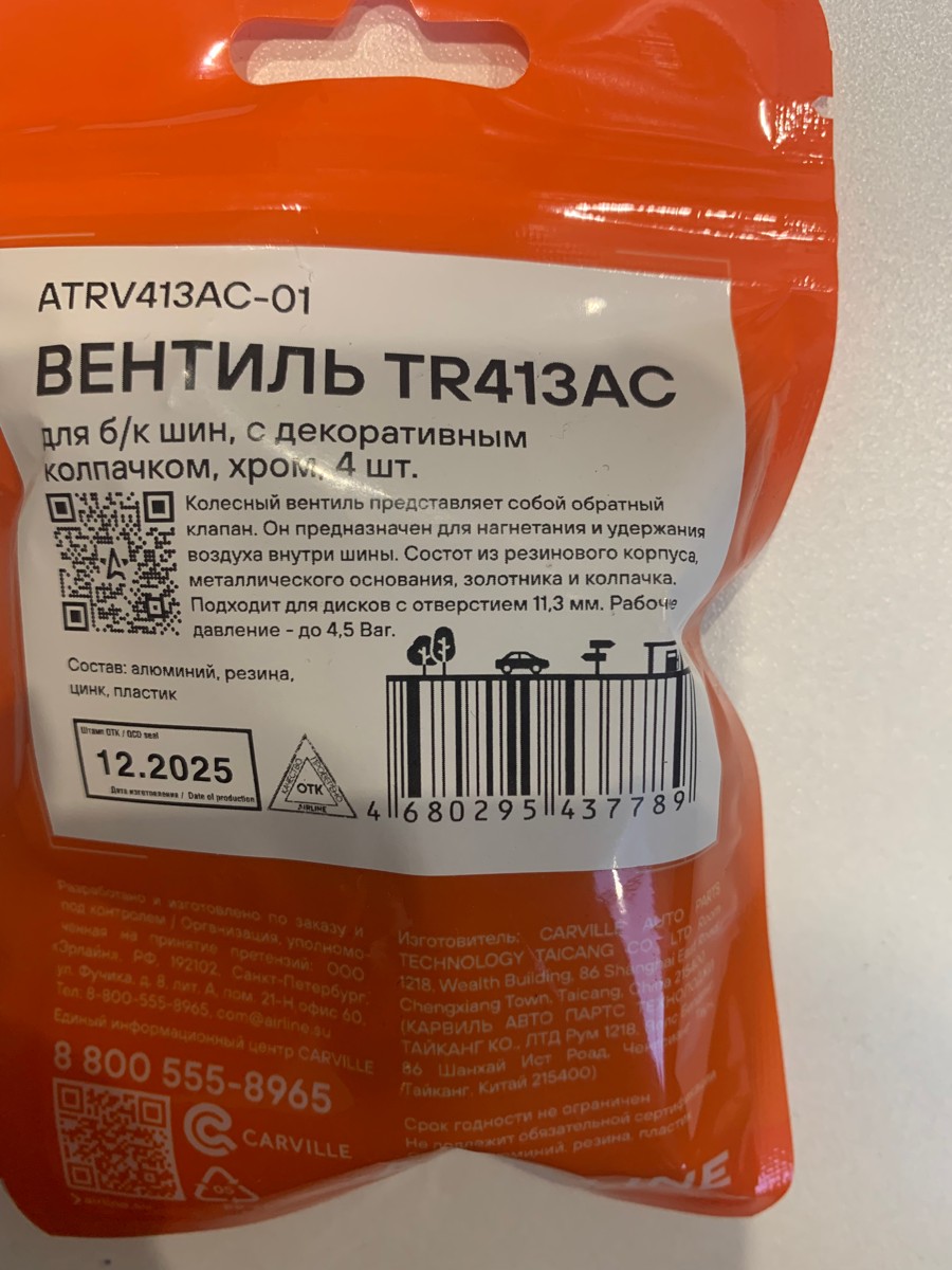 Колесный вентиль представляет собой обратный клапан. Он предназначен для нагнетания и удержания воздуха внутри шины. Состот из резинового корпуса, металлического основания, золотника и колпачка. Подходит для дисков с отверстием 11,3 мм. Рабочее давление - до 4,5 Bar.