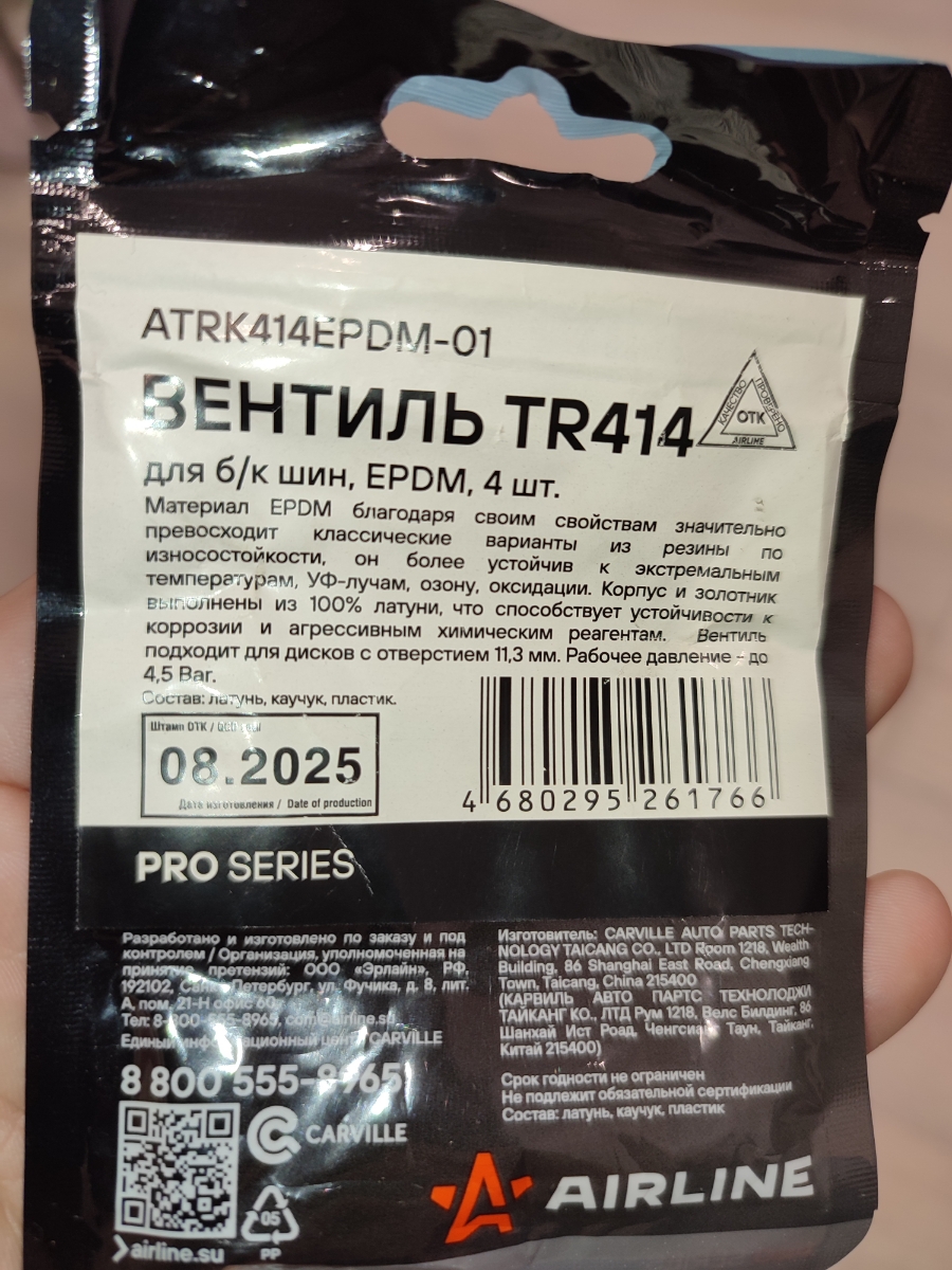 Колесный вентиль представляет собой обратный клапан. Он предназначен для нагнетания и удержания воздуха внутри шины. Состот из резинового корпуса, металлического основания, золотника и колпачка. Подходит для дисков с отверстием 11,3 мм. Рабочее давление - до 4,5 Bar. Материал EPDM (этиленпропиленовый каучук) обладает лучшими показателями износотойкости по сравнению с обычной резиной. Он более устойчив к высоким и низким температурам, УФ-лучам и химическим реагентам.