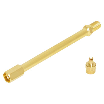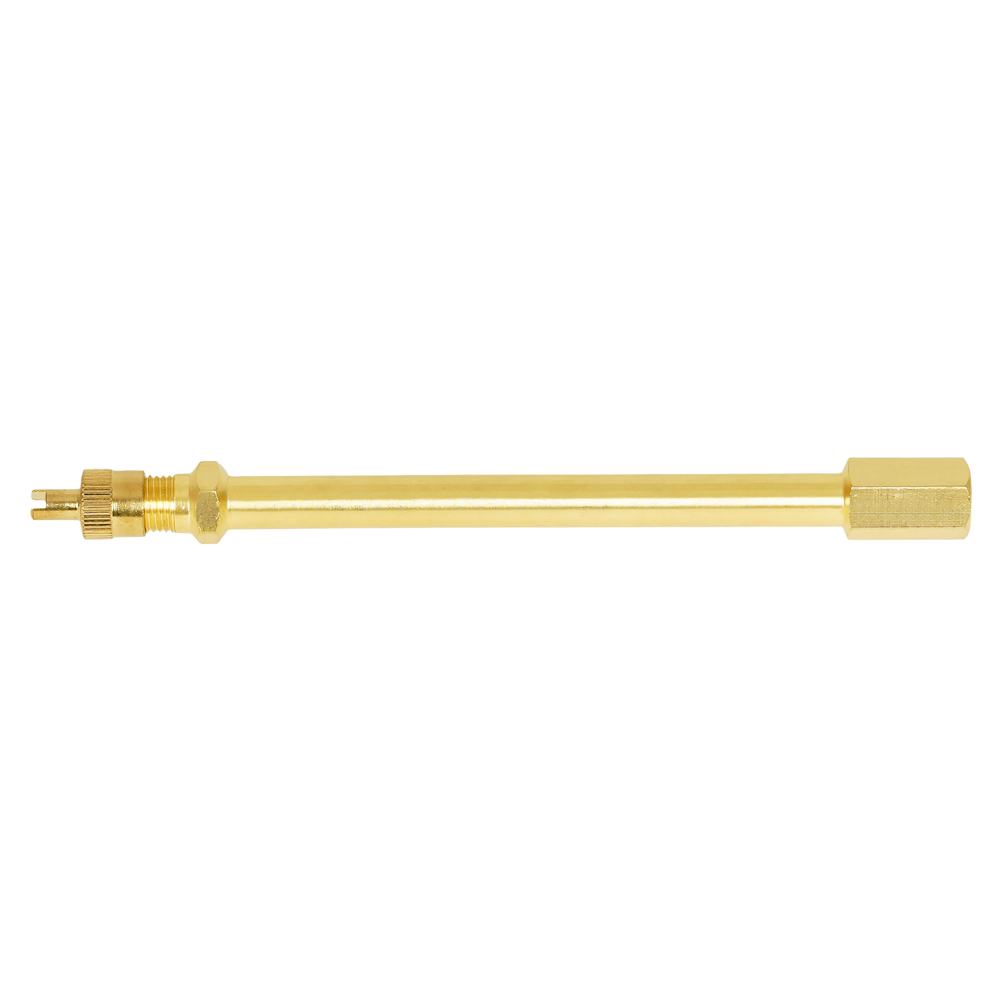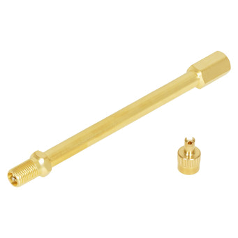 Удлинитель вентиля предназначен для подкачки внутренного колеса на спаренных (сдвоенных) колесах грузовиков, самосвалов, тягачей и другой техники, имеющей по 4 колеса на заднем мосту. Удлинитель накручивается на вентиль и остается на нем на постоянной основе. Через удлинитель можно без проблем подкачать внутренне колесо или проверить давление воздуха в нем.