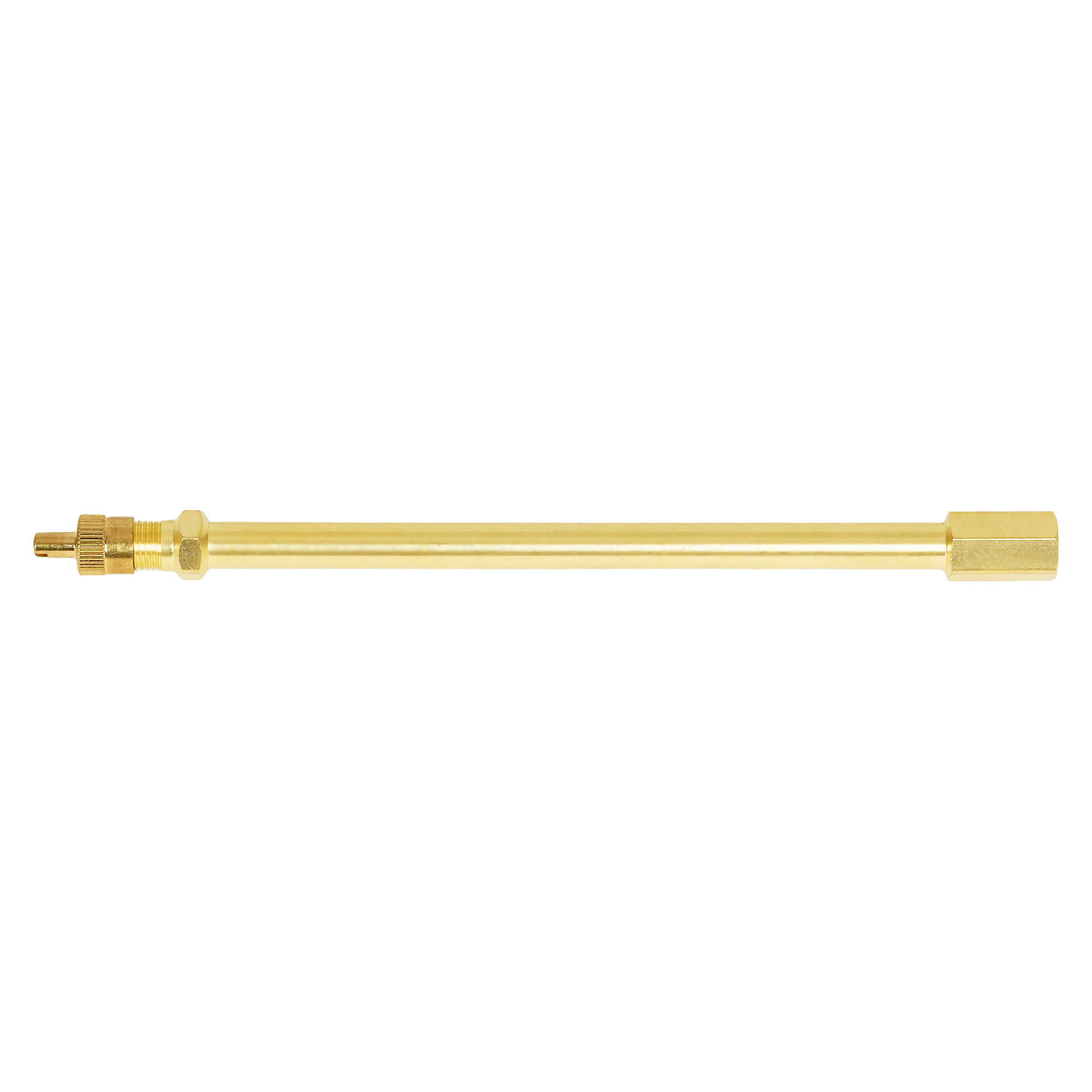 Удлинитель вентиля предназначен для подкачки внутренного колеса на спаренных (сдвоенных) колесах грузовиков, самосвалов, тягачей и другой техники, имеющей по 4 колеса на заднем мосту. Удлинитель накручивается на вентиль и остается на нем на постоянной основе. Через удлинитель можно без проблем подкачать внутренне колесо или проверить давление воздуха в нем.