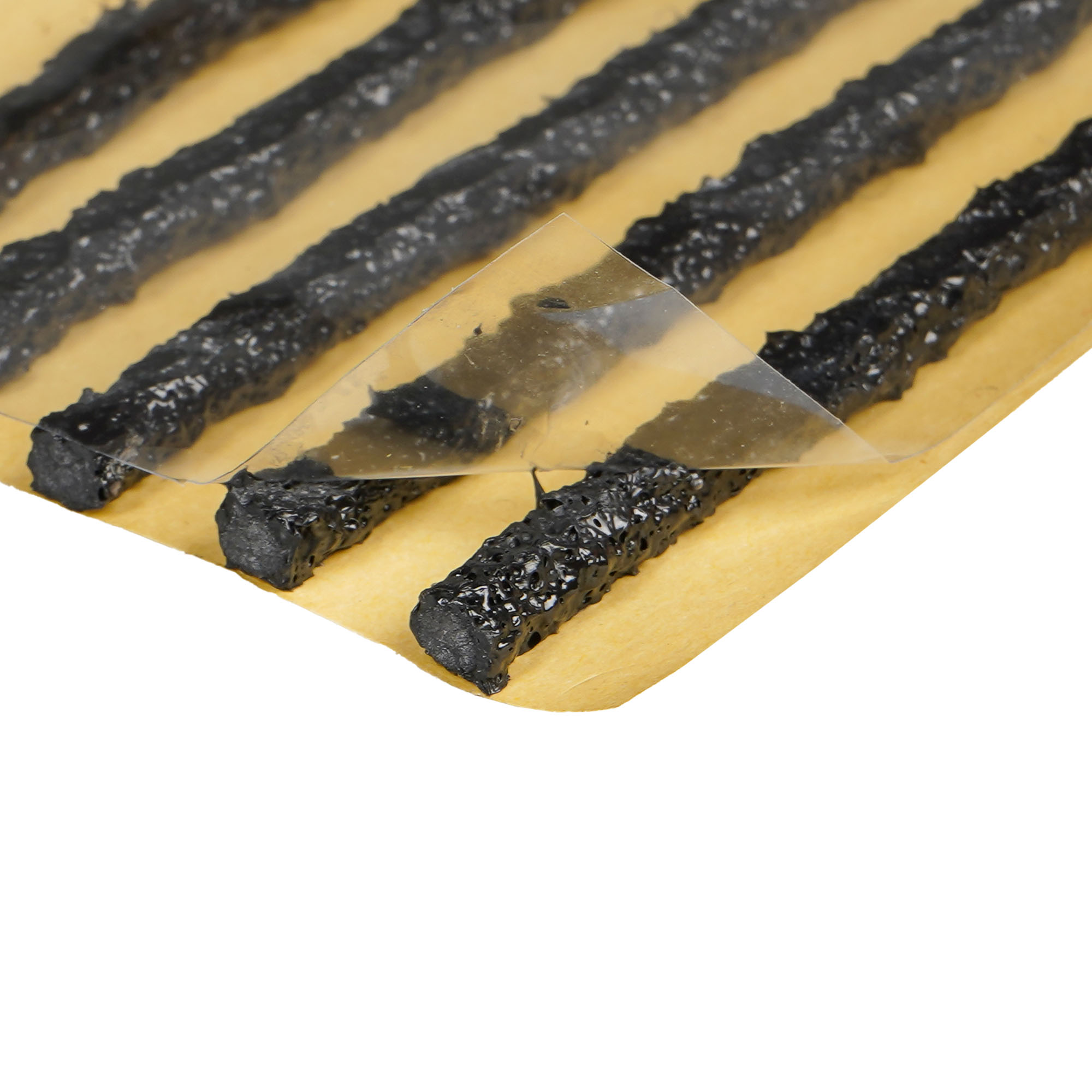 Жгуты из бутилкаучука используются для заделывания проколов в шинах авто- и мототехники. Благодаря армированию нейлоновым кордом удалось добиться лучших показателей по долговечности и износостойкости