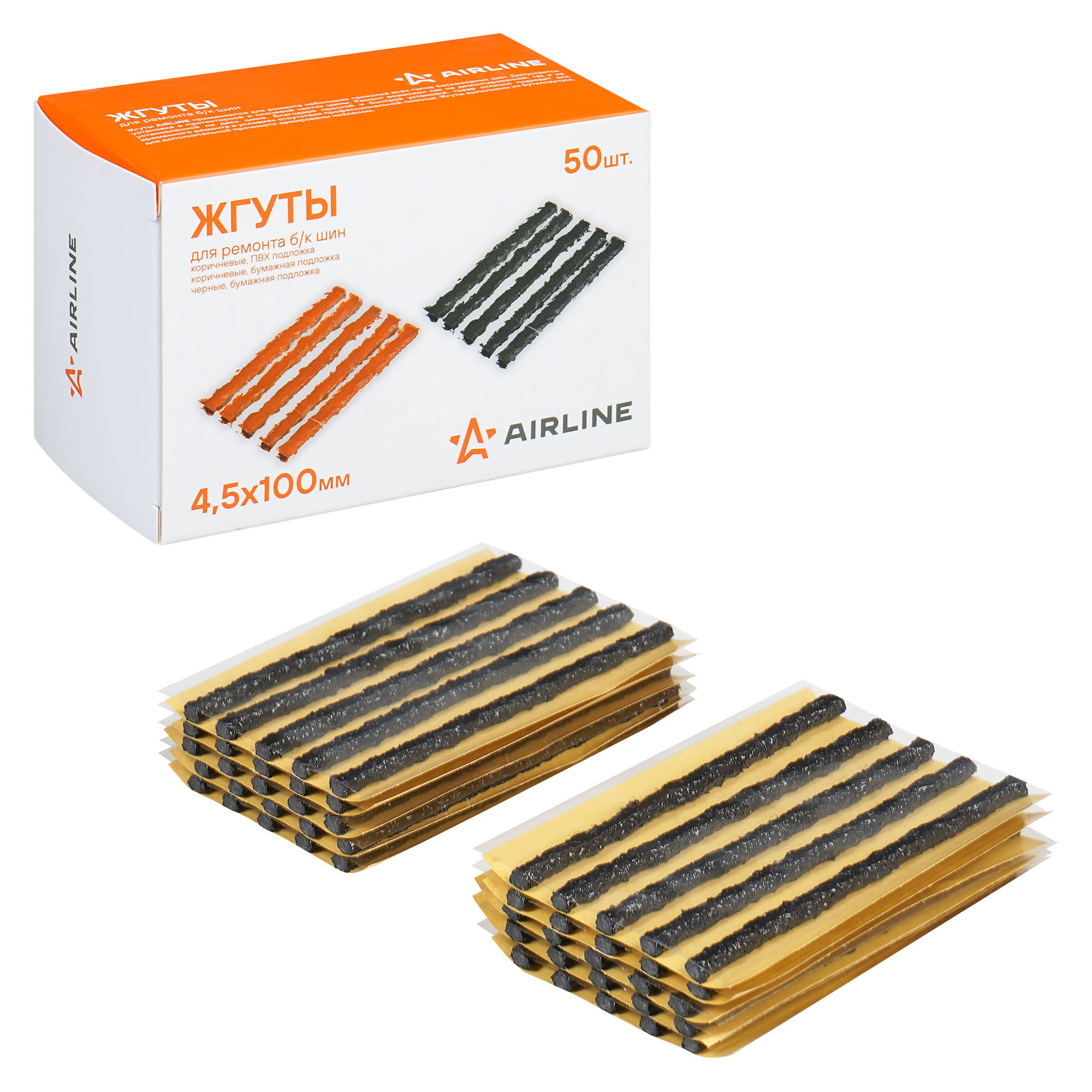 Жгуты для ремонта б/к шин, 4.5*100мм, 50 шт, черные, бумажн. подложка, в коробке