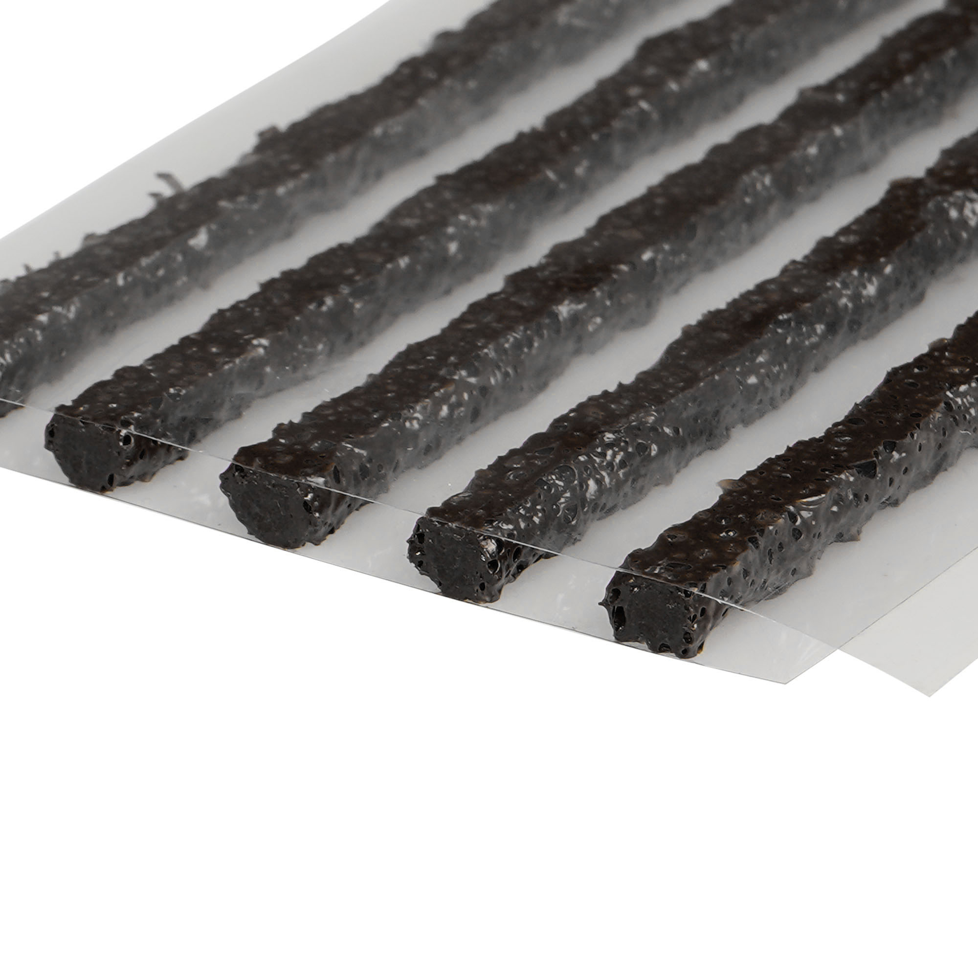 Жгуты из бутилкаучука используются для заделывания проколов в шинах авто- и мототехники. Благодаря армированию нейлоновым кордом удалось добиться лучших показателей по долговечности и износостойкости