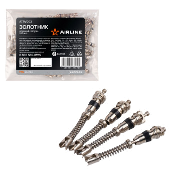 Золотник — это устройство, направляющее воздух путём смещения подвижной части относительно тела, в котором она скользит. Золотники, которые устанавливаются в автомобильных вентилях, позволяют регулировать давление воздуха в шине. Для обеспечения правильной работы золотника резиновый клапан золотника должен плотно прилегать к стенкам металлической втулки внутри вентиля, чтобы воздух не выходил через вентиль. Золотники AIRLINE серии PRO более долговечны и обладают большей износостойкостью по сравнению с классическими вариантами из цинка. Золотники обладают лучшими показатели коррозионной устойчивости, срок службы в среднем в два раза больше.