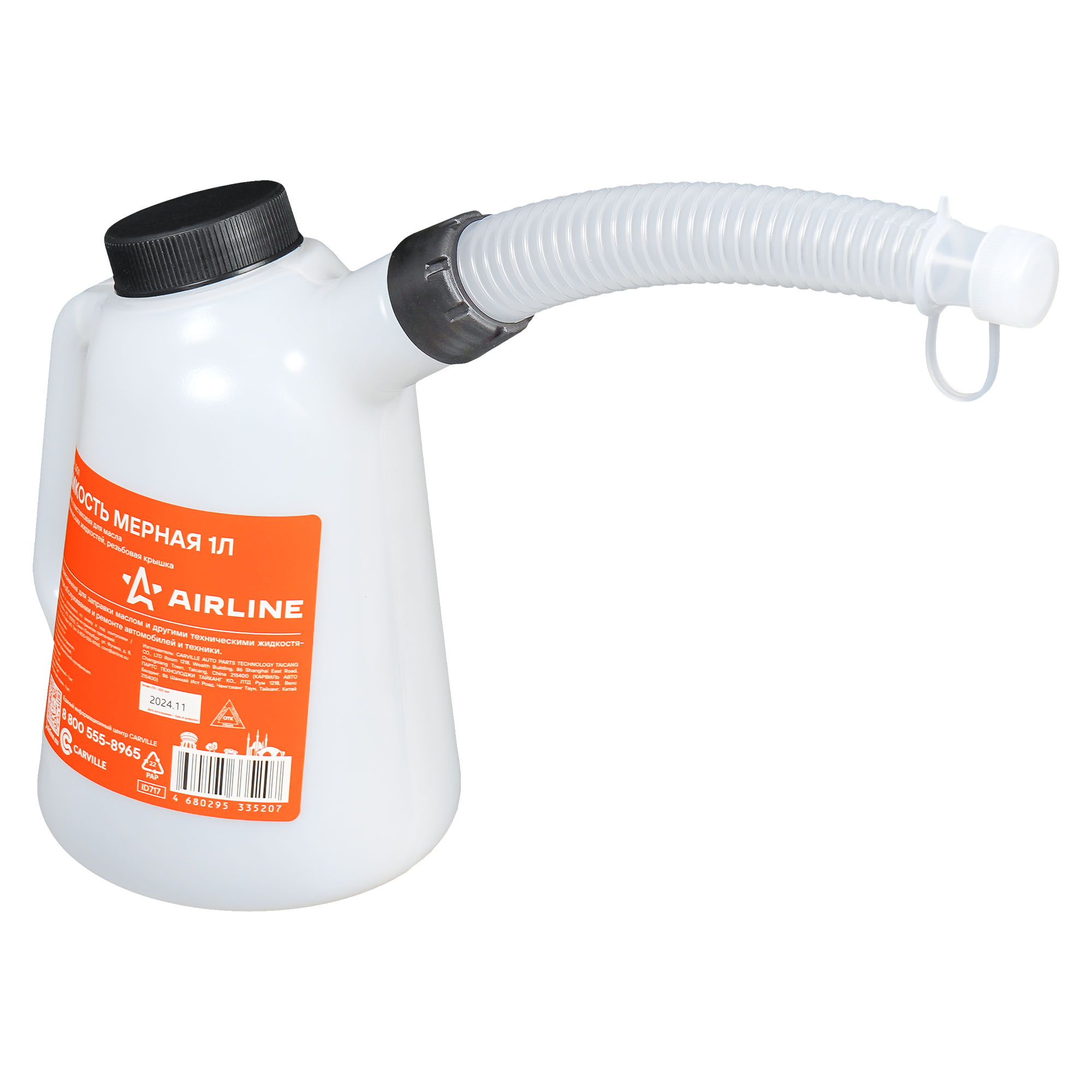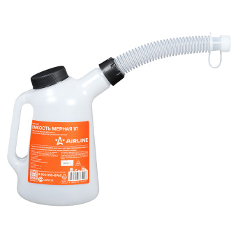 Емкость (лейка) мерная 1л пластиковая AIRLINE APFL001 предназначена для заправки маслом и другими техническими жидкостями при обслуживании и ремонте автомобилей и техники. Изделие имеет гофрированный гибкий носик для заправки. На конце носика находится специальный клапан. Крышка с резьбовой фиксацией защищает жидкость внутри лейки от попадания частиц пыли и мусора.
