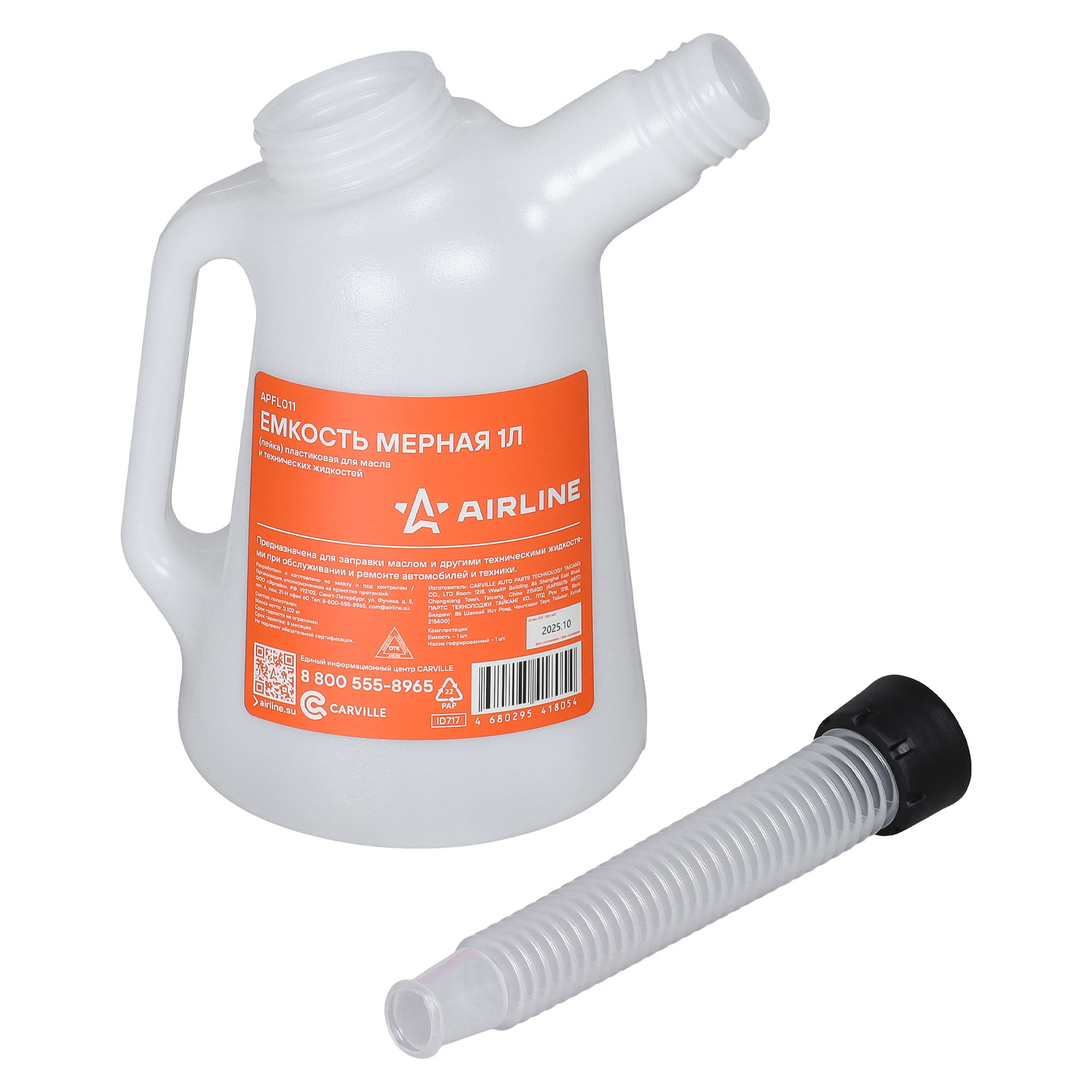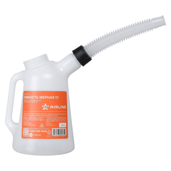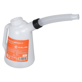 Емкость (лейка) мерная 1л пластиковая AIRLINE APFL001 предназначена для заправки маслом и другими техническими жидкостями при обслуживании и ремонте автомобилей и техники. Изделие имеет гофрированный гибкий носик для заправки.