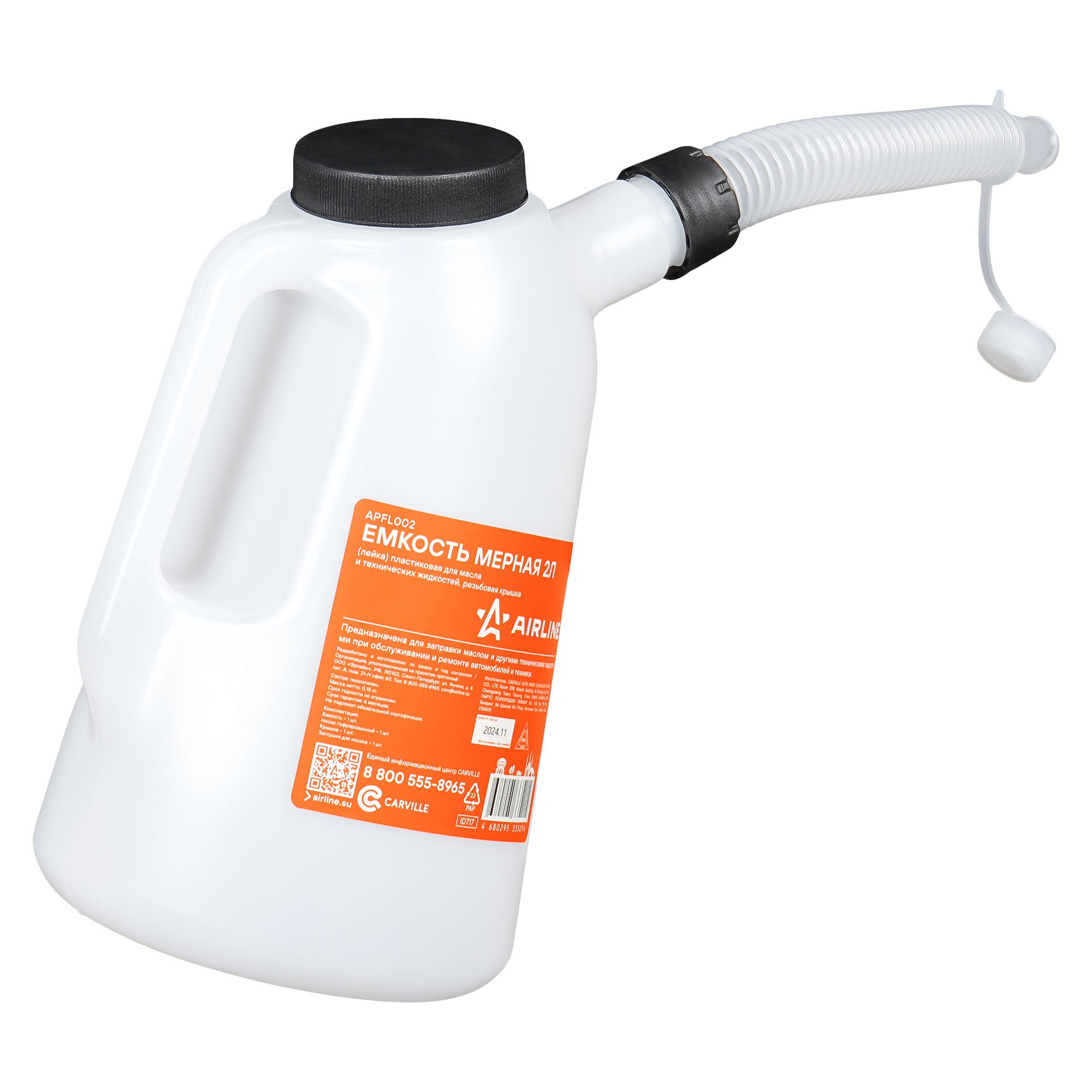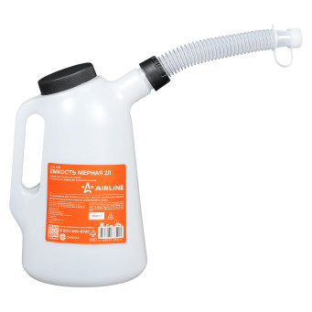 Емкость (лейка) мерная 2л пластиковая AIRLINE APFL002 предназначена для заправки маслом и другими техническими жидкостями при обслуживании и ремонте автомобилей и техники. Изделие имеет гофрированный гибкий носик для заправки. На конце носика находится специальный клапан. Крышка с резьбовой фиксацией защищает жидкость внутри лейки от попадания частиц пыли и мусора.