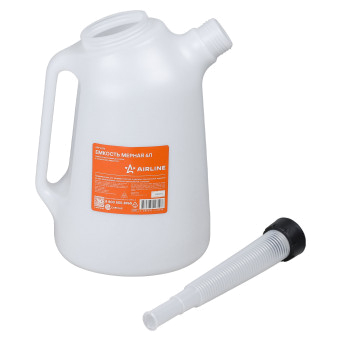 Емкость (лейка) мерная 6л пластиковая AIRLINE APFL016 предназначена для заправки маслом и другими техническими жидкостями при обслуживании и ремонте автомобилей и техники. Изделие имеет гофрированный гибкий носик для заправки.