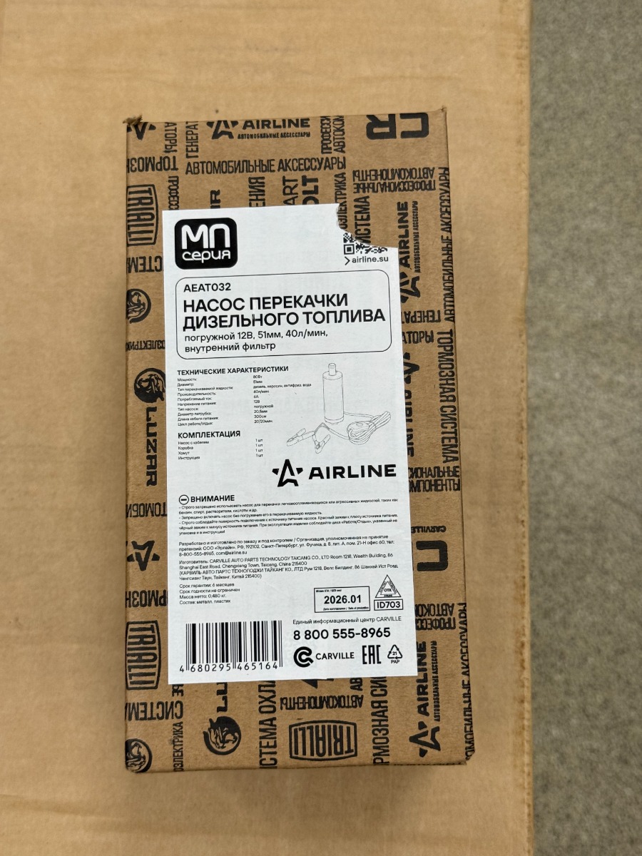 Насос погружной AIRLINE AEAT032 12В диаметром 51мм предназначен для перекачки дизельного топлива из бочки, цистерны или любой другой емкости с узким горлышком.