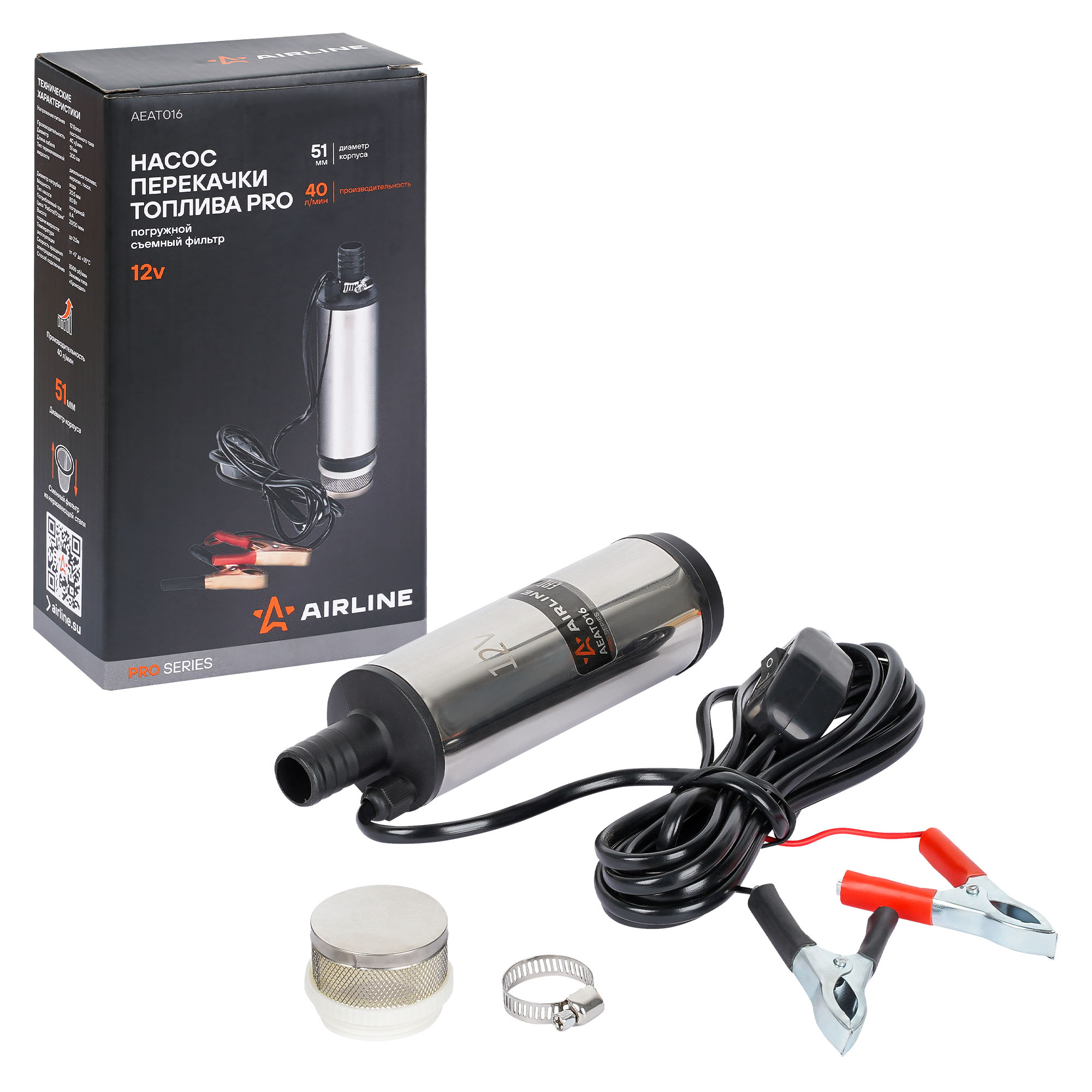 Насос погружной AIRLINE AEAT016 12В диаметром 51мм предназначен для перекачки дизельного топлива из бочки, цистерны или любой другой емкости с узким горлышком. Оснащен съемным фильтром грубой очистки из нержавеющей стали. Это обеспечивает максимальную длительность эксплуатации, а также возможность произвести замену фильтра.