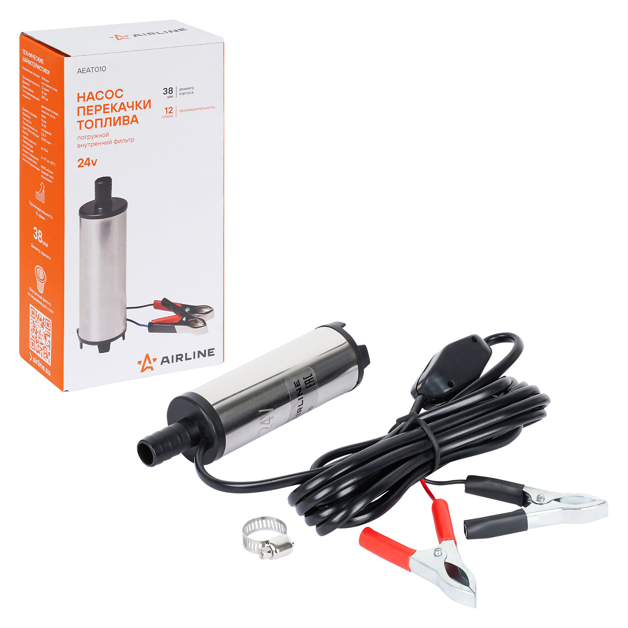Насос погружной AIRLINE AEAT010 24В диаметром 38мм предназначен для перекачки дизельного топлива из бочки, цистерны или любой другой емкости с достаточно узким горлышком.