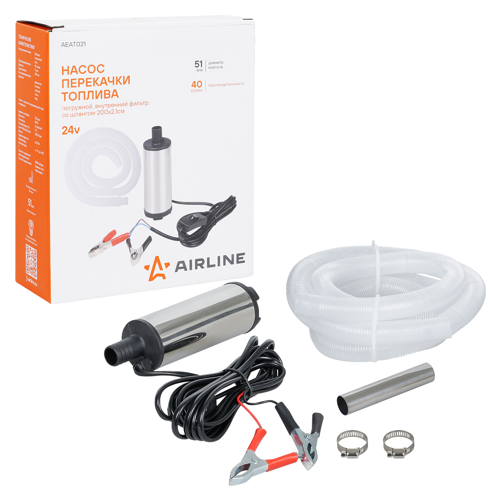 Насос погружной AIRLINE AEAT021 24В диаметром 51мм предназначен для перекачки дизельного топлива из бочки, цистерны или любой другой емкости с узким горлышком.