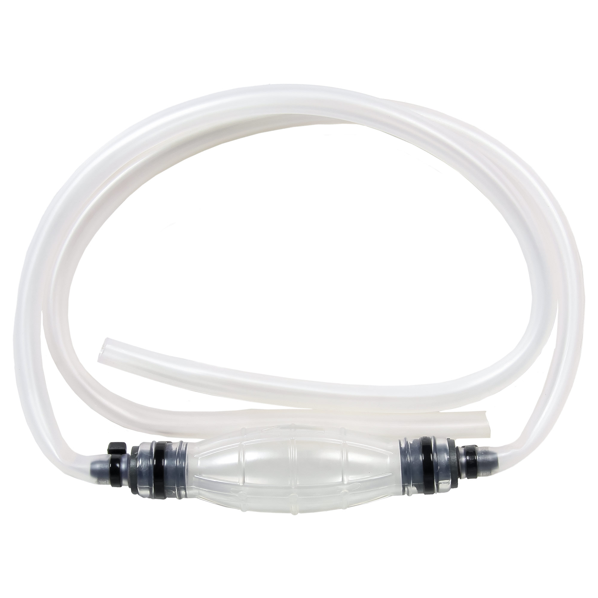 Насос для ручной перекачки топлива имеет специальный клапан, пропускающий перекачиваемое топливо только в одном направлении. Для перекачки бензина или дизельного топлива нужно один конец шланга окунуть в канистру или бензобак автомобиля и ритмично сжимать и разжимать "грушу". На груше есть стрелка, которая показывает направление перекачки топлива.