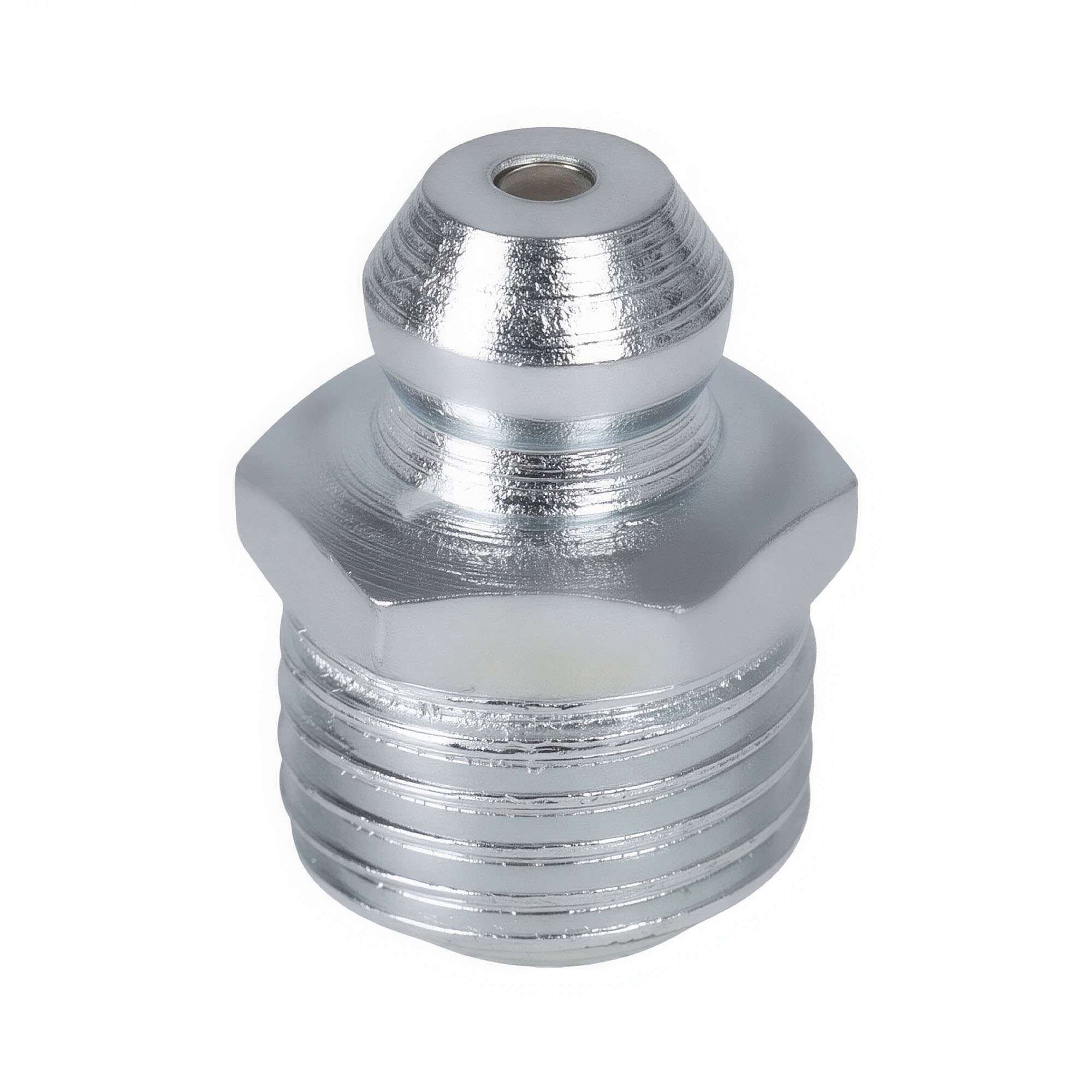Стальная ниппельная маслёнка для установки в узлах механизмов, требующих смазывания пластичной смазкой. Через пресс-маслёнку смазка нагнетается в узел с помощью любого нагнетателя смазки.