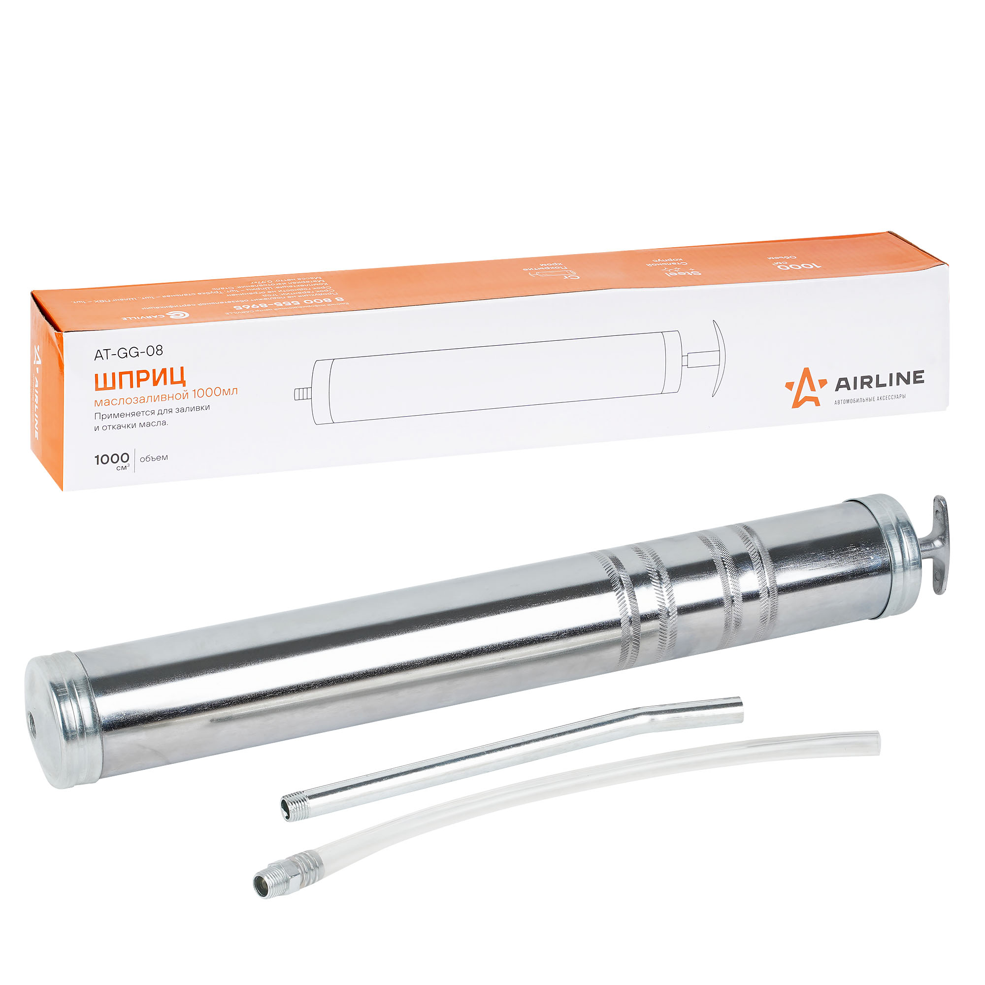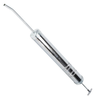 Шприц маслозаливной изготовлен из стали. Прочный корпус имеет защитное покрытие.