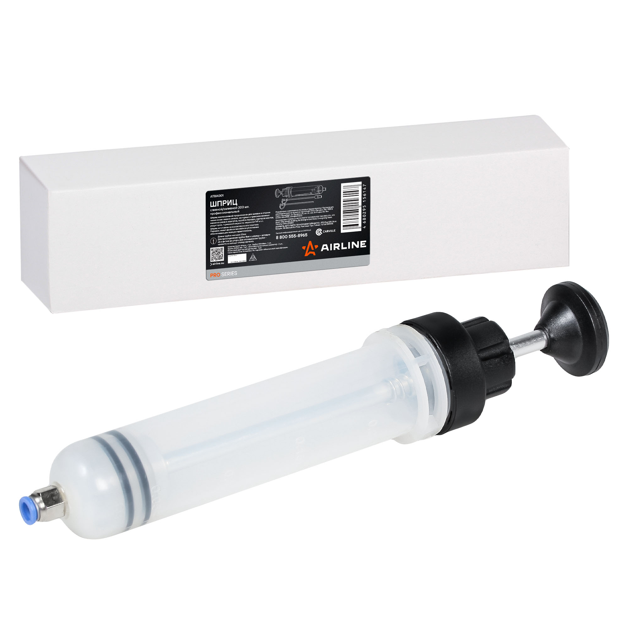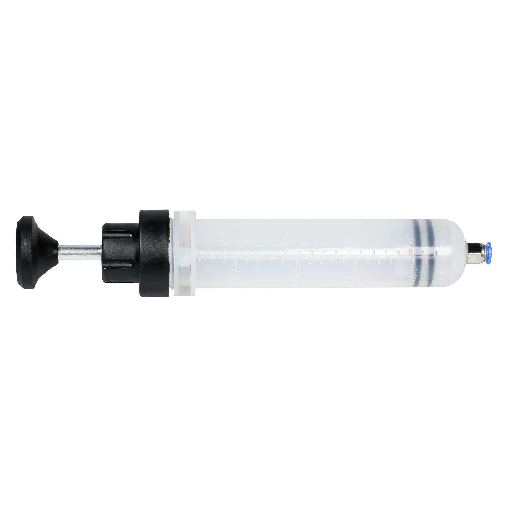 Шприц изготовлен из высокопрочного пластика. Поршень имеет двойное манжетное уплотнение обеспечивающее полную герметичность. Шприц комплектуется двумя дополнительными манжетами, шлангом 8х200мм, шлангом 6х200мм, а также резиновым адаптером для удлинения трубки.