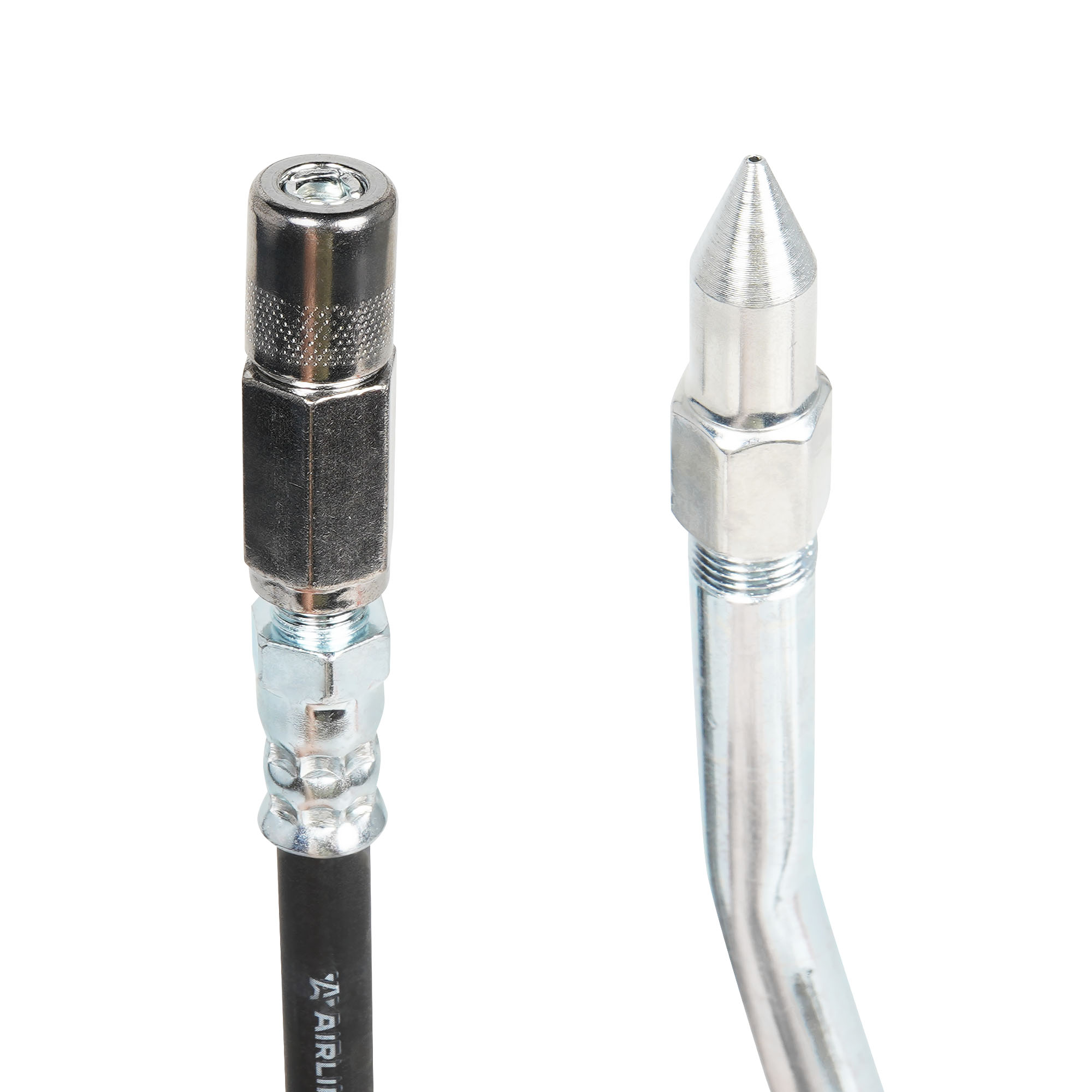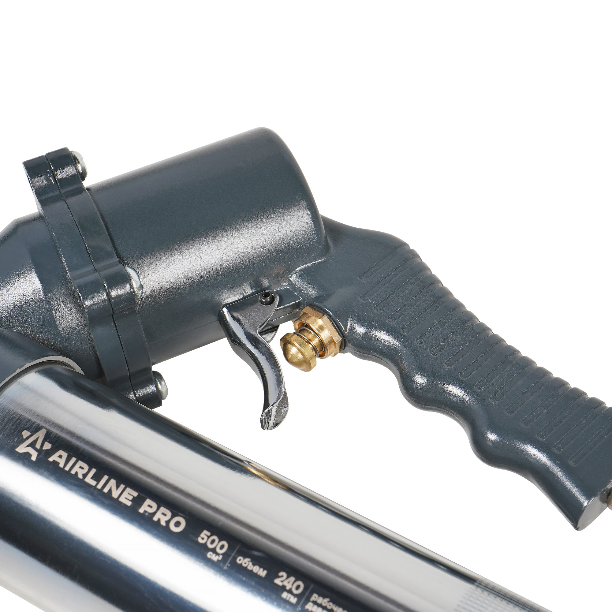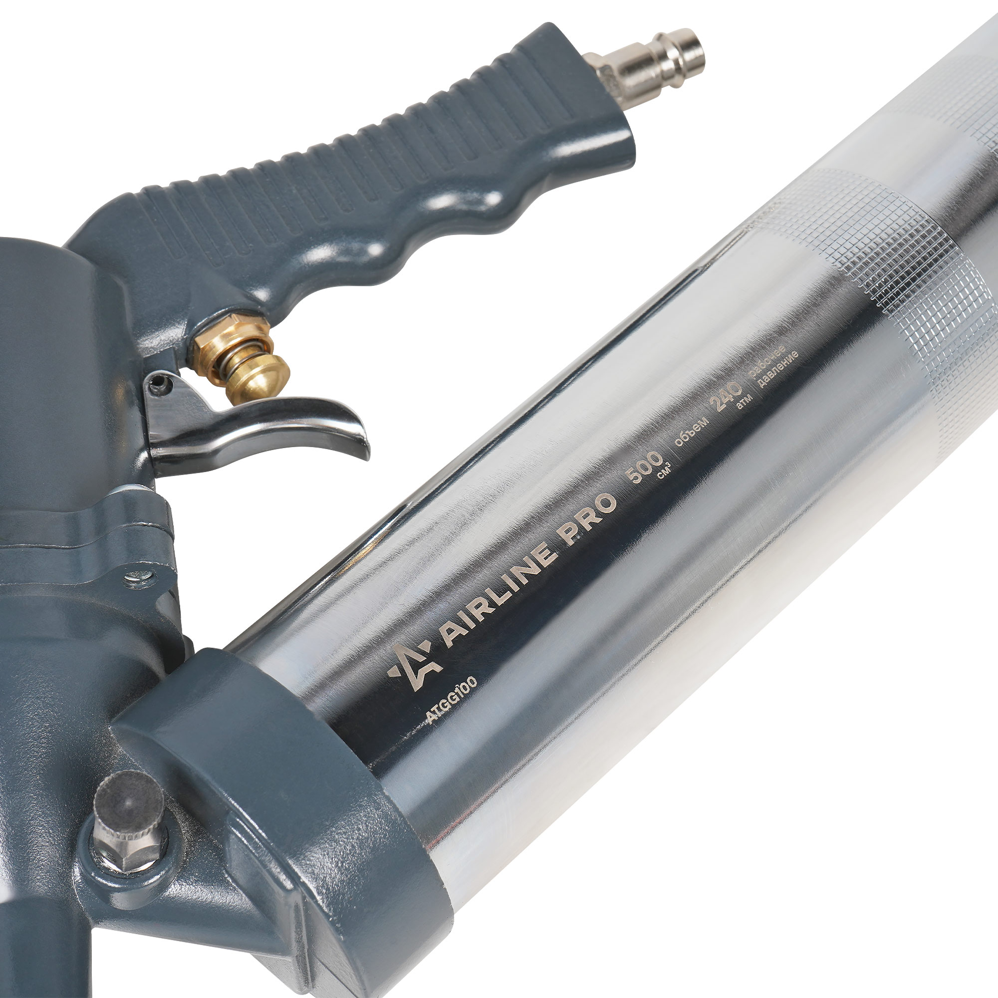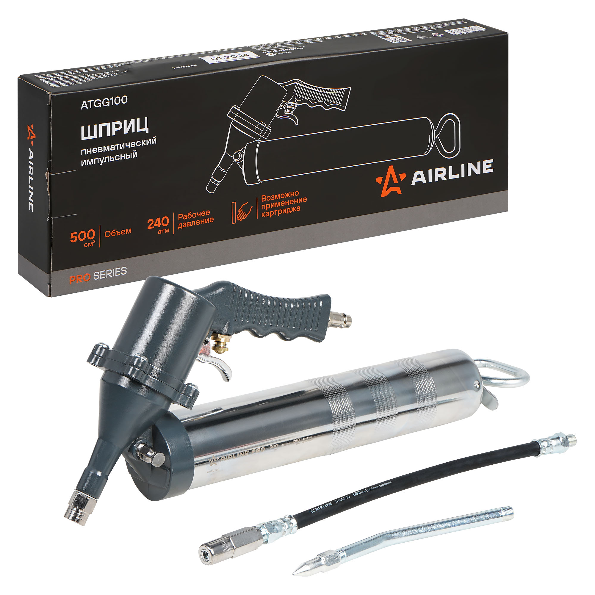 Шприц пневматический AIRLINE ATGG100 предназначен для нагнетания пластичной (консистентной) смазки в различные узлы и агрегаты, подверженные трению. Производится из высокопрочной стали на автоматизированном оборудовании. Применяется для обслуживания легковых автомобилей, грузовых, тракторов, спецтехники, промышленного оборудования и станков. Изделие имеет возможность заправки двумя способами: с помощью картриджа (туба со смазкой 400гр) и ручным способом (шпателем/из емкости). На головке шприца имеется специальный высокоэффективный клапан винтового типа для удаления воздуха. Шприц комплектуется резиновым износостойким шлангом 300мм, усиленной стальной трубкой 150мм, а также четырехлепестковым и коническим наконечником.