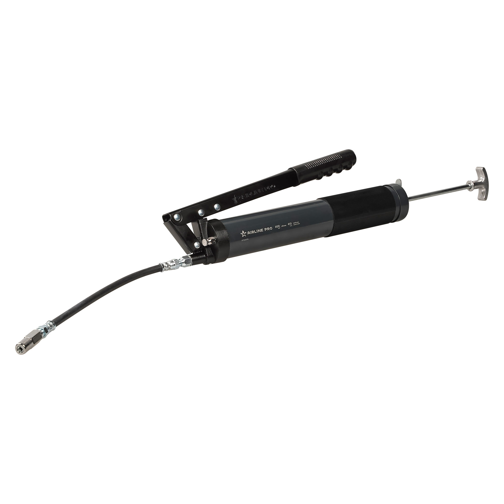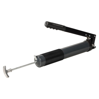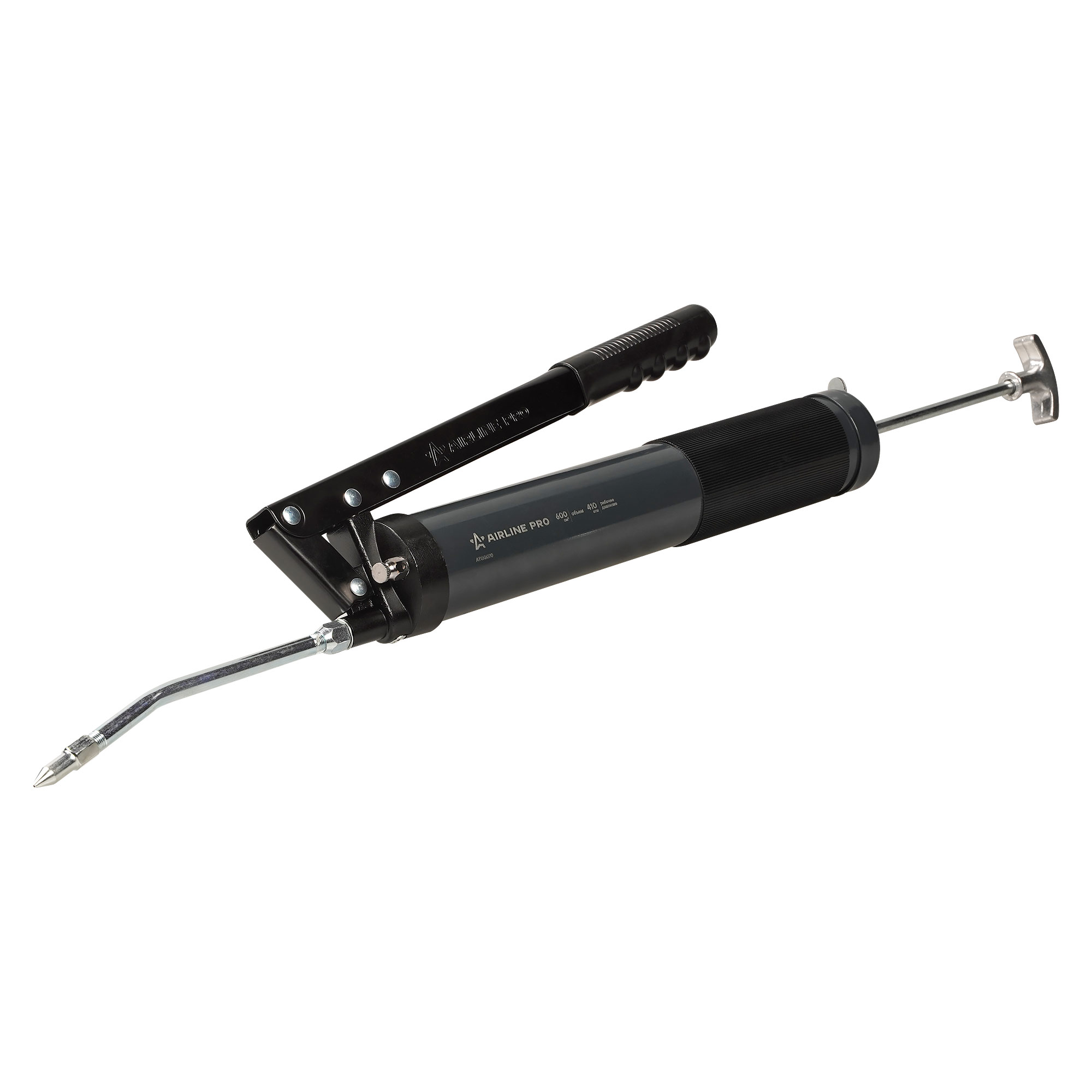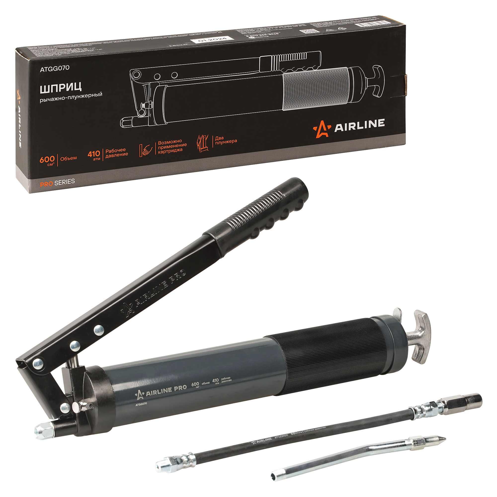 Шприц двухплунжерный AIRLINE ATGG070 предназначен для нагнетания пластичной (консистентной) смазки в различные узлы и агрегаты, подверженные трению. Производится из высокопрочной стали на автоматизированном оборудовании. Применяется для обслуживания легковых автомобилей, грузовых, тракторов, спецтехники, промышленного оборудования и станков. Изделие имеет возможность заправки тремя способами: с помощью картриджа (туба со смазкой 400гр), ручным способом (шпателем/из емкости) и нагнетателем смазки через специальный клапан. Два плунжера обеспечивают повышенную производительность при работе. На головке шприца имеется специальный высокоэффективный клапан винтового типа для удаления воздуха. Шприц комплектуется резиновым износостойким шлангом 300мм, усиленной стальной трубкой 150мм, а также четырехлепестковым и коническим наконечником. Данная модель оснащена резиновой рукоятью для повышения удобства эксплуатации и нескользящей резиновой накладкой, которая способствует улучшенному сцеплению с цилиндрическим корпусом шприца при работе.