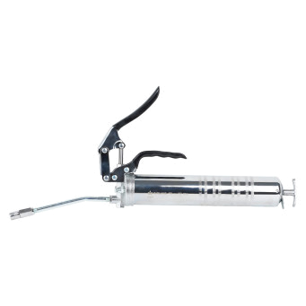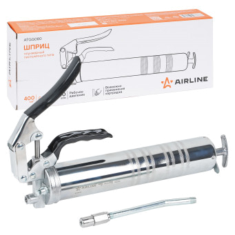 Шприц рычажно-плунжерный пистолетного типа AIRLINE ATGG080 предназначен для нагнетания пластичной (консистентной) смазки в различные узлы и агрегаты, подверженные трению. Производится из высокопрочной стали на автоматизированном оборудовании. Применяется для обслуживания легковых автомобилей, грузовых, тракторов, спецтехники, промышленного оборудования и станков. Изделие имеет возможность заправки тремя способами: с помощью картриджа (туба со смазкой 400гр), ручным способом (шпателем/из емкости) и нагнетателем смазки через специальный клапан. На головке шприца имеется клапан для удаления воздуха. Шприц комплектуется усиленной стальной трубкой 150мм, а также четырехлепестковым наконечником.