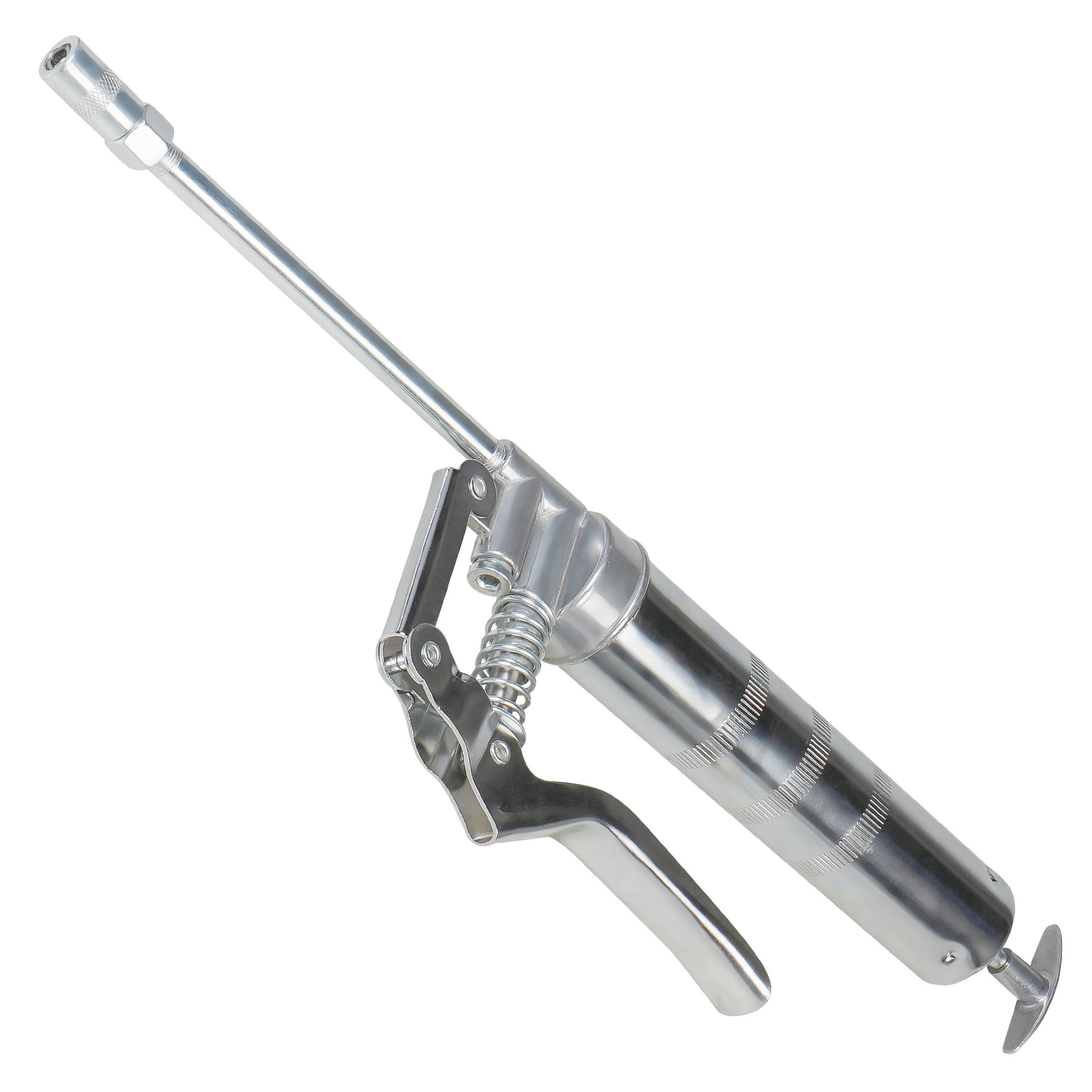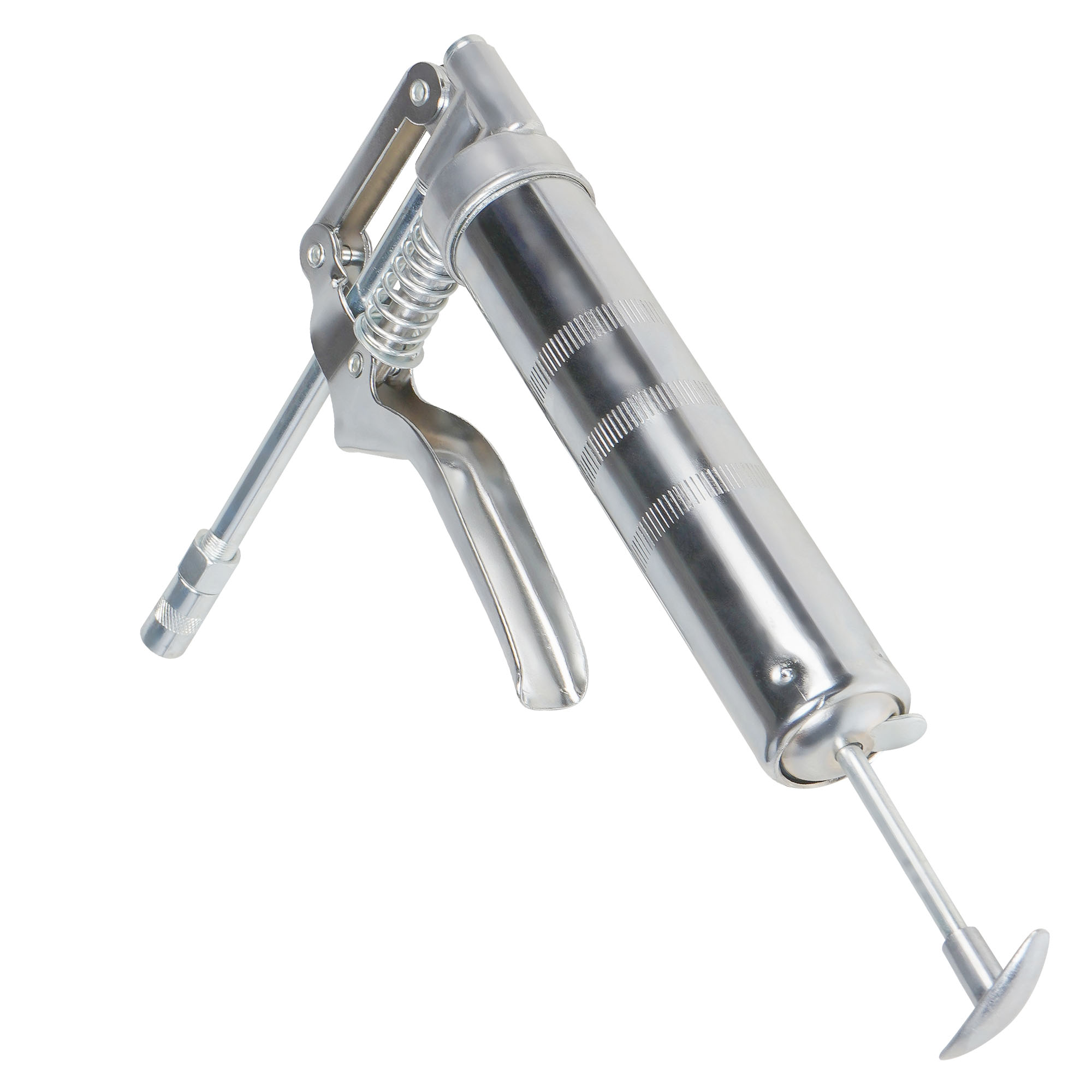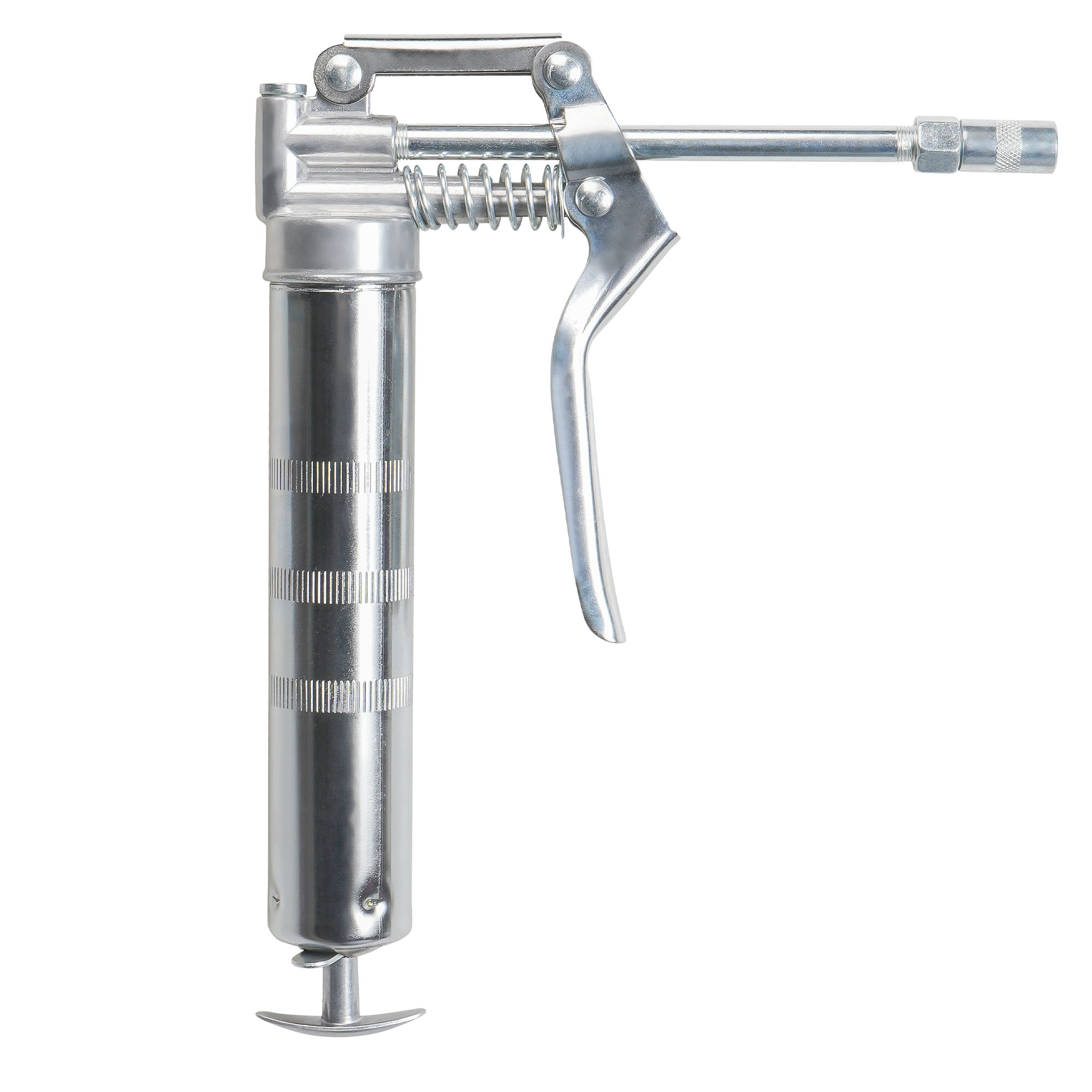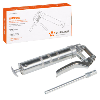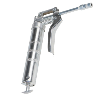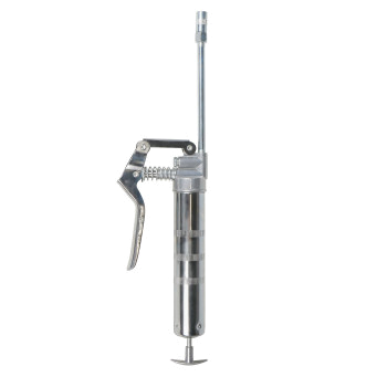 Шприц изготовлен из стали. Прочный корпус имеет защитное покрытие. Ручное заполнение смазкой.