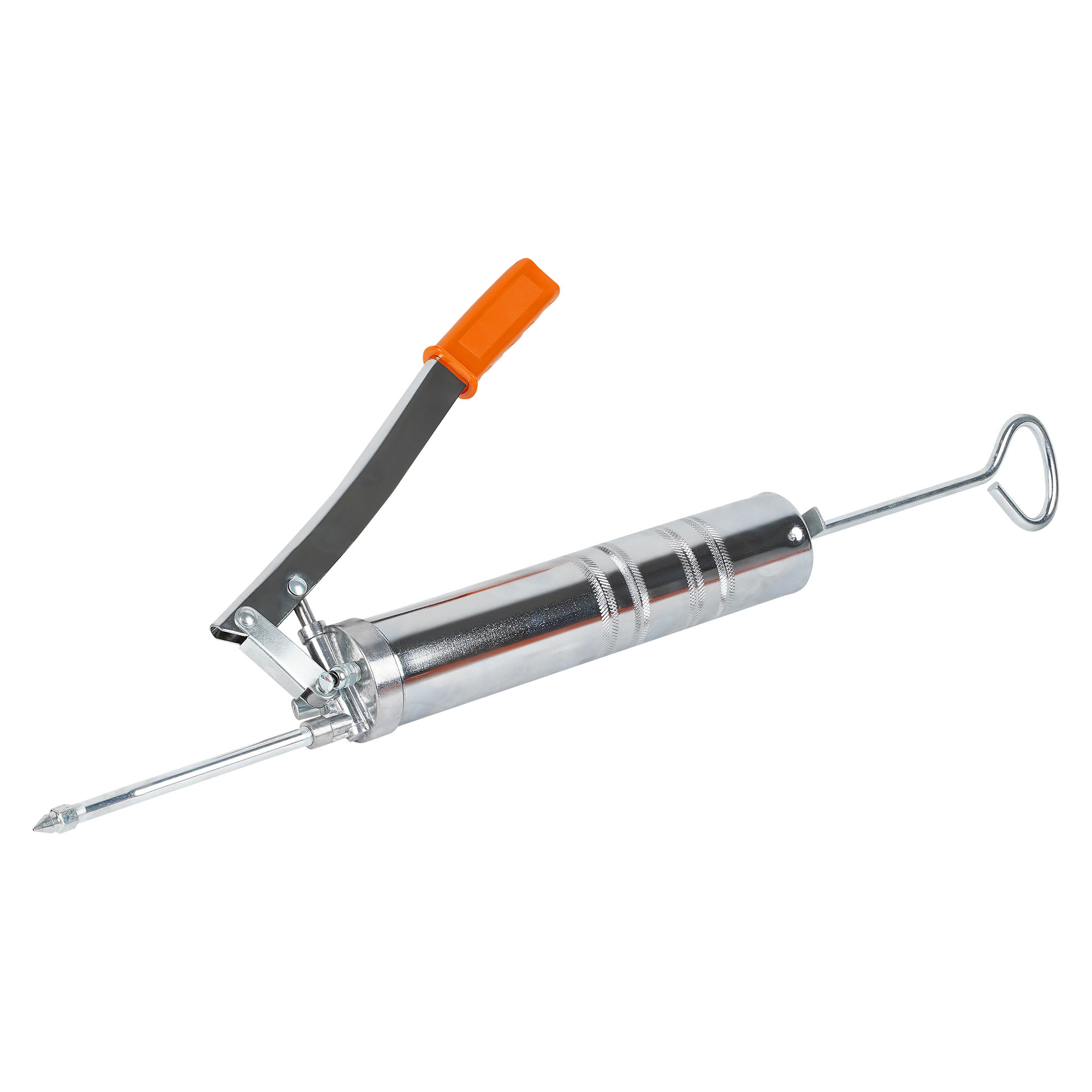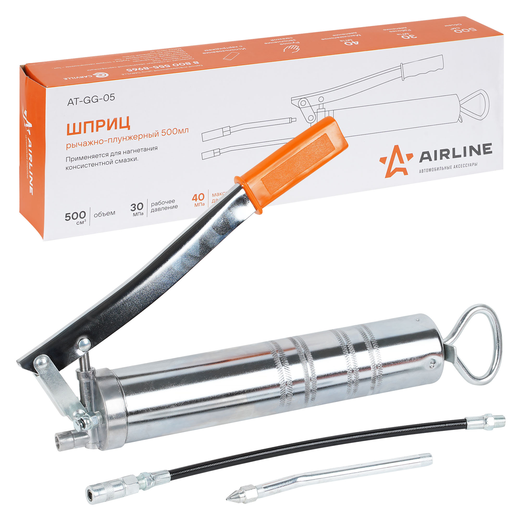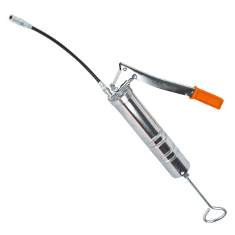 Шприц изготовлен из стали. Прочный корпус имеет защитное покрытие. Применение стандартного картриджа или ручное заполнение смазкой.