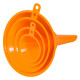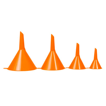 Воронки данной модели имеют традиционную форму и пластиковый корпус. В наборе представлены 4 воронки различных размеров. Комплект воронок позволяет подобрать необходимый размер изделия исходя из потребностей при переливании. Воронки легко очищаются от загрязнений и изготовлены из прочного пластика.