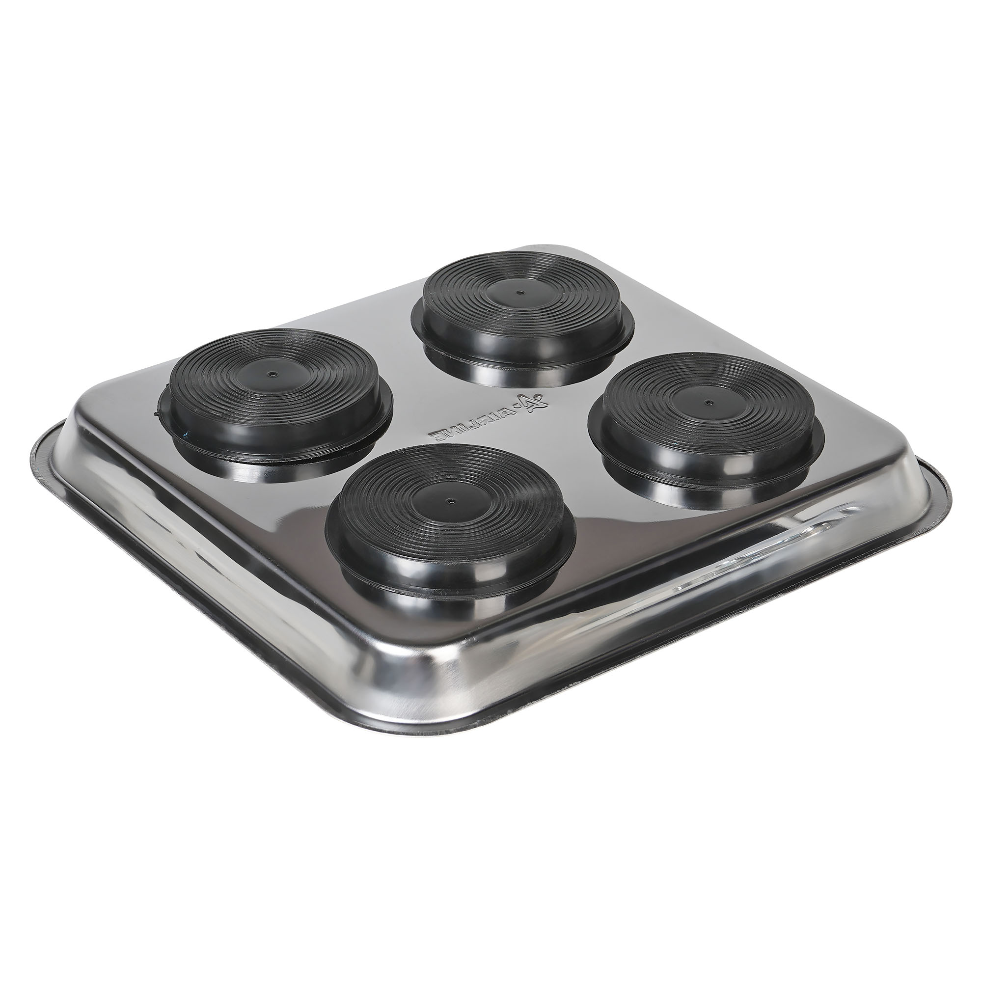 Магнитная тарелка предназначена для удержания металлических крепежных элементов, таких как болты, гайки, шайбы, во время работы. Благодаря мощному магниту детали надежно фиксируются внутри тарелки, предотвращая их потерю. Компактные размеры делают инструмент удобным для использования в автомастерских, гаражах, на производстве и в бытовых условиях.