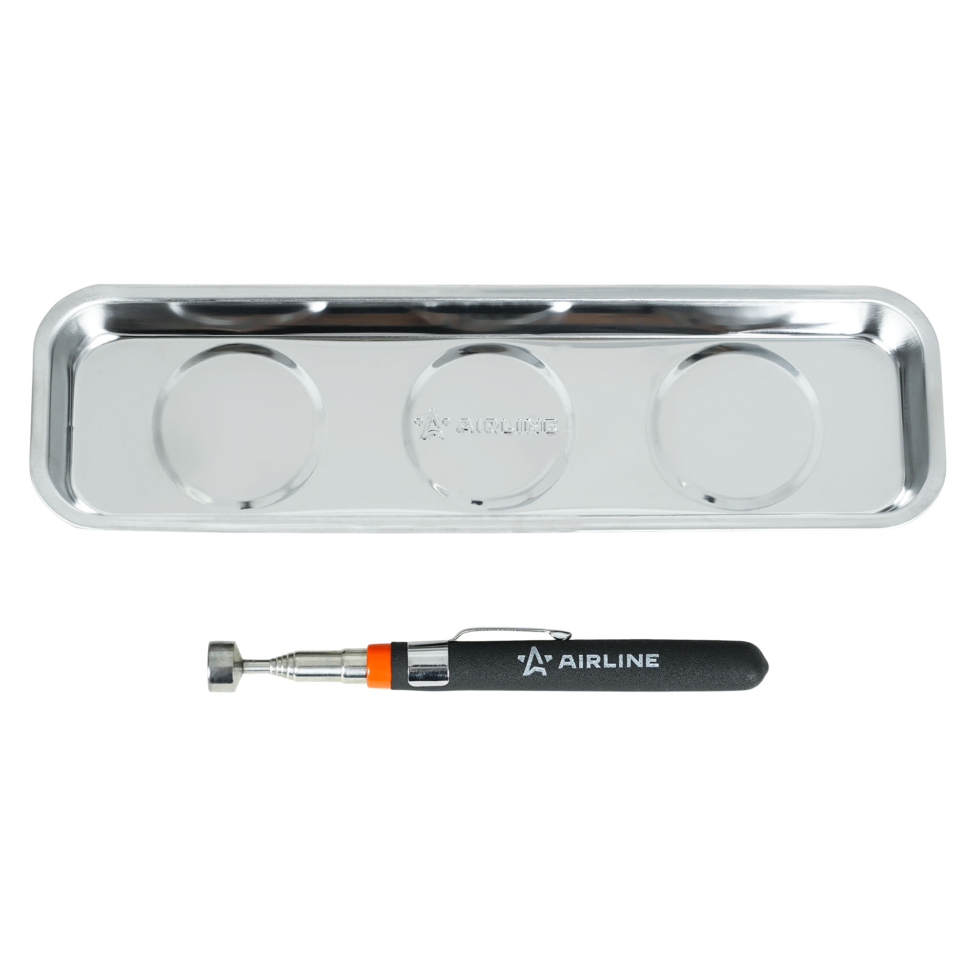 Инструмент инспекционный, набор 2пр. (захват телескоп., магнитная тарелка), предназначен для удобной работы с мелкими металлическими деталями, такими как гайки, болты, шайбы и винты. Этот комплект станет незаменимым помощником в автомастерских, сервисных центрах и домашних условиях.