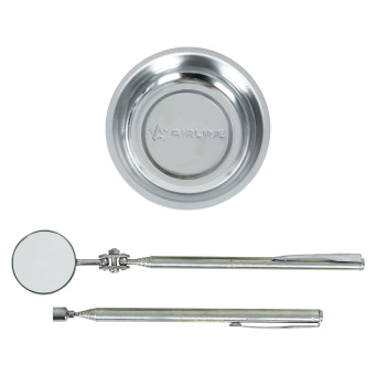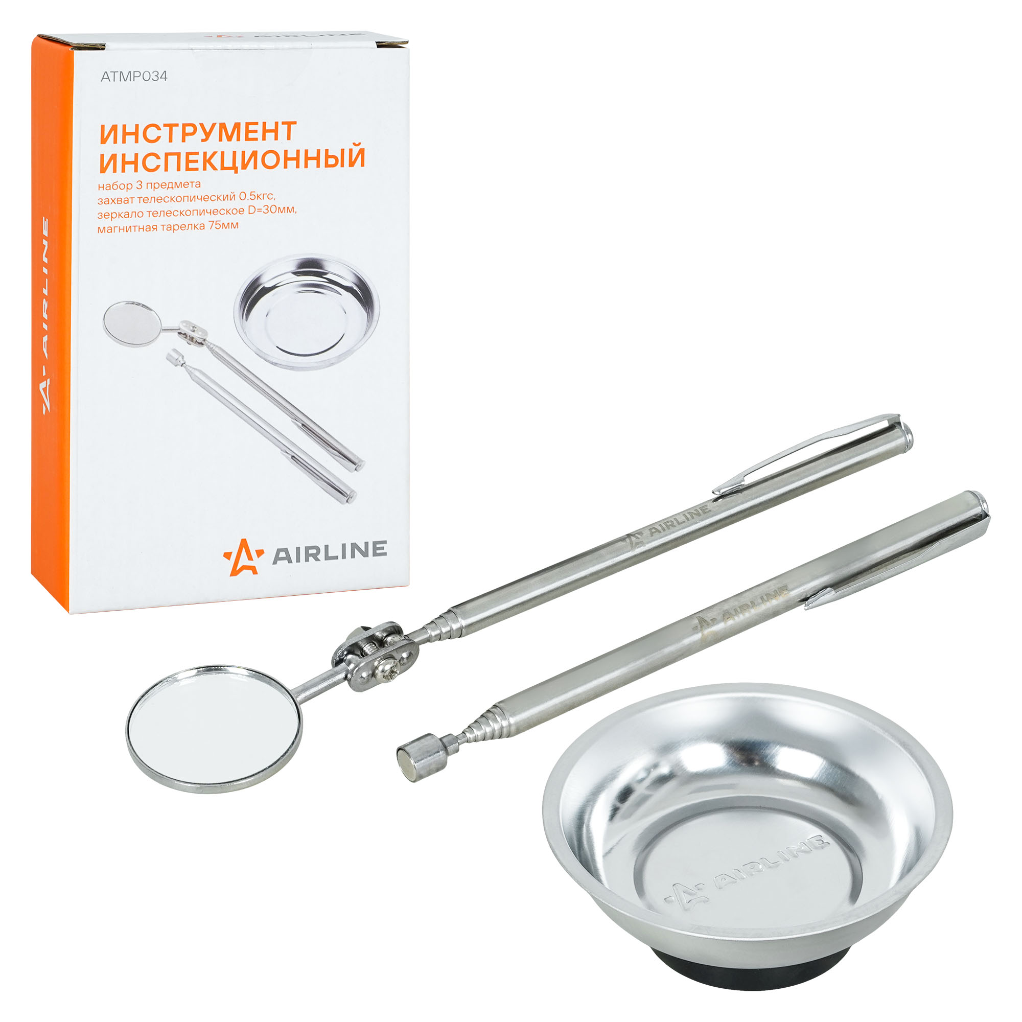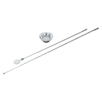 Инструмент инспекционный, набор 3пр. (захват телескоп., зеркало телескоп., магнитная тарелка), предназначен для удобной работы с мелкими металлическими деталями, такими как гайки, болты, шайбы и винты. Этот комплект станет незаменимым помощником в автомастерских, сервисных центрах и домашних условиях.
