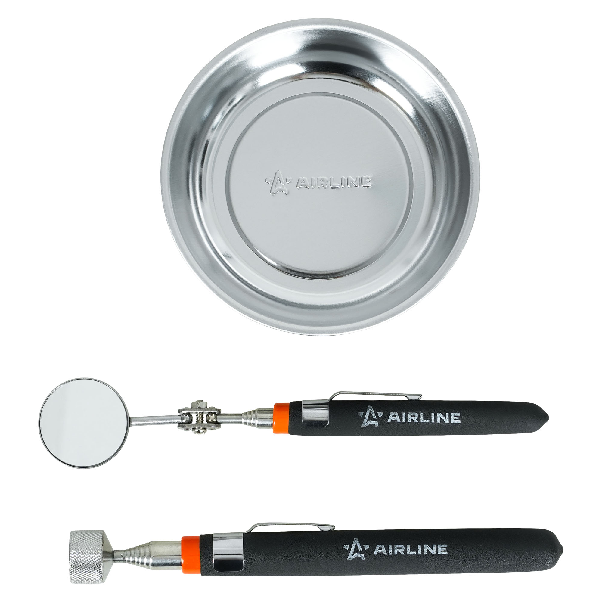 Инструмент инспекционный, набор 3пр. (захват телескоп., зеркало телескоп., магнитная тарелка), предназначен для удобной работы с мелкими металлическими деталями, такими как гайки, болты, шайбы и винты. Этот комплект станет незаменимым помощником в автомастерских, сервисных центрах и домашних условиях.