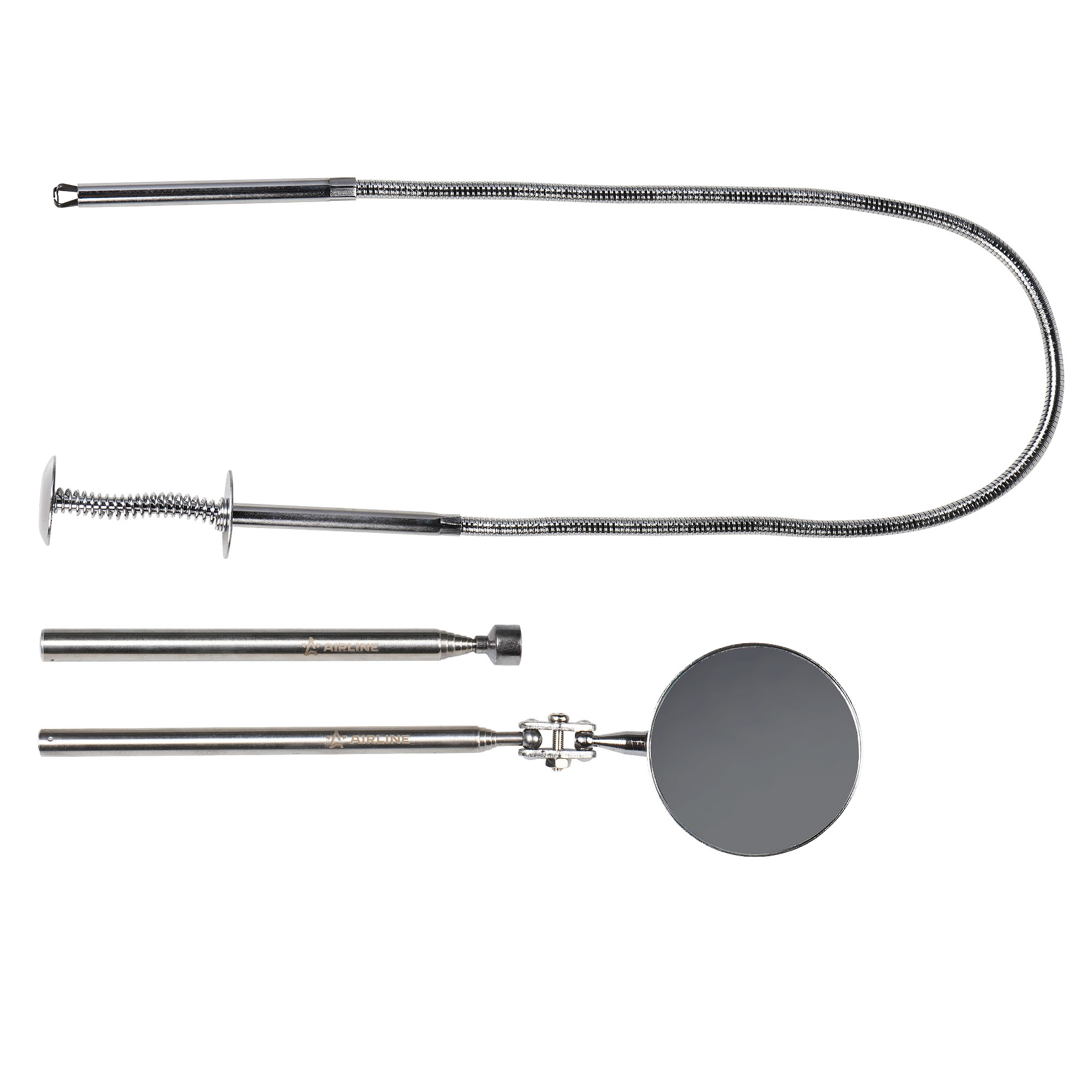 Инструмент инспекционный, набор 3пр. Применяется для осмотра узлов и агрегатов, а также подъёма мелких деталей и элементов крепежа из труднодоступных мест.