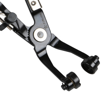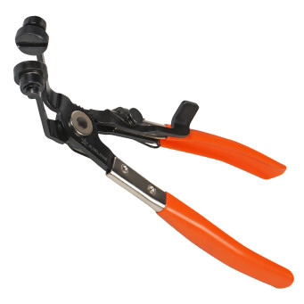 Щипцы загнутые для пружинных хомутов с V-образными канавками предназначены для быстрого и удобного демонтажа и установки самозатягивающихся (пружинных) хомутов на различных системах автомобиля, таких как система охлаждения, подачи топлива и вентиляции. Благодаря специальной конструкции рабочей части инструмент позволяет захватывать хомуты под разными углами, облегчая доступ к труднодоступным местам.